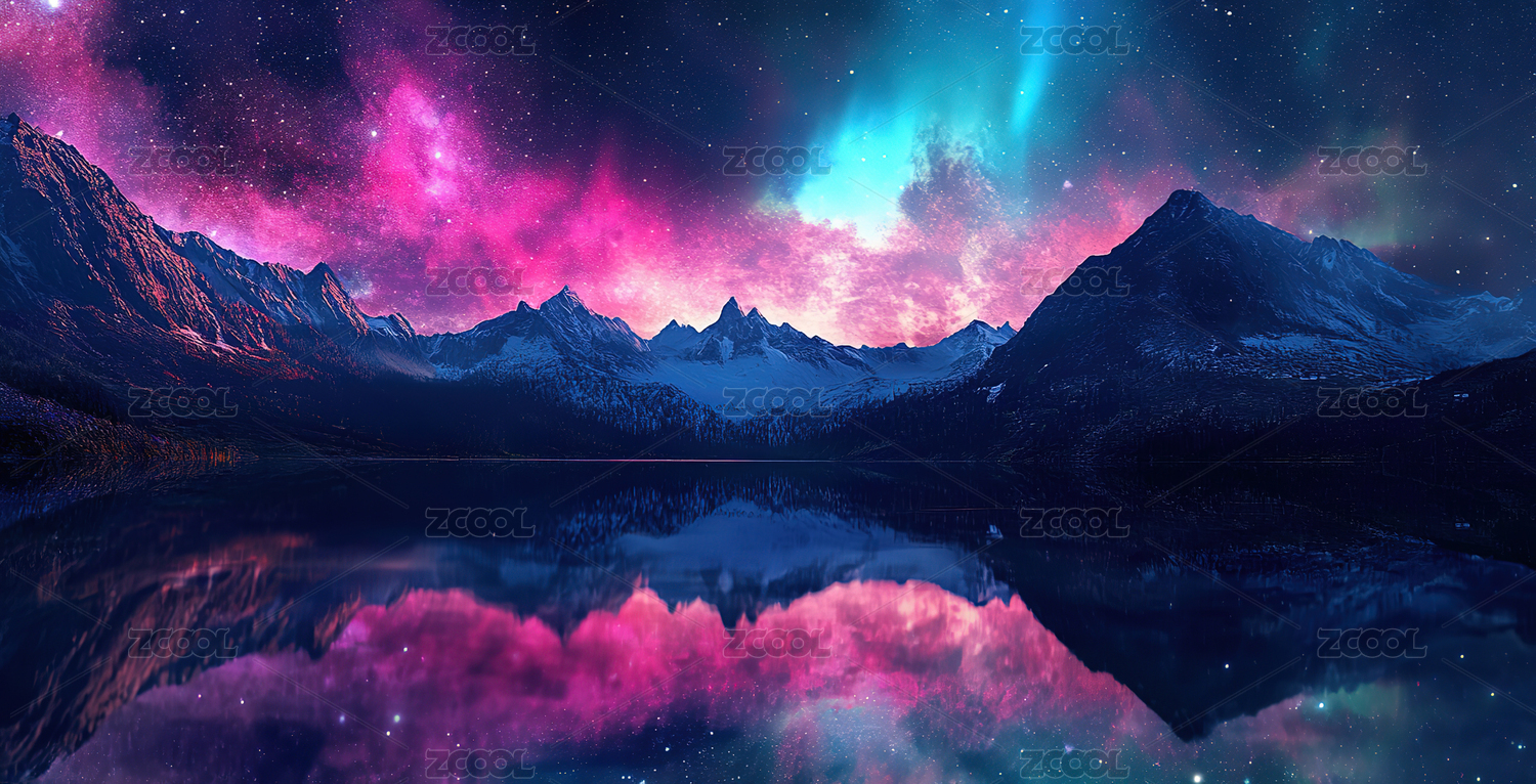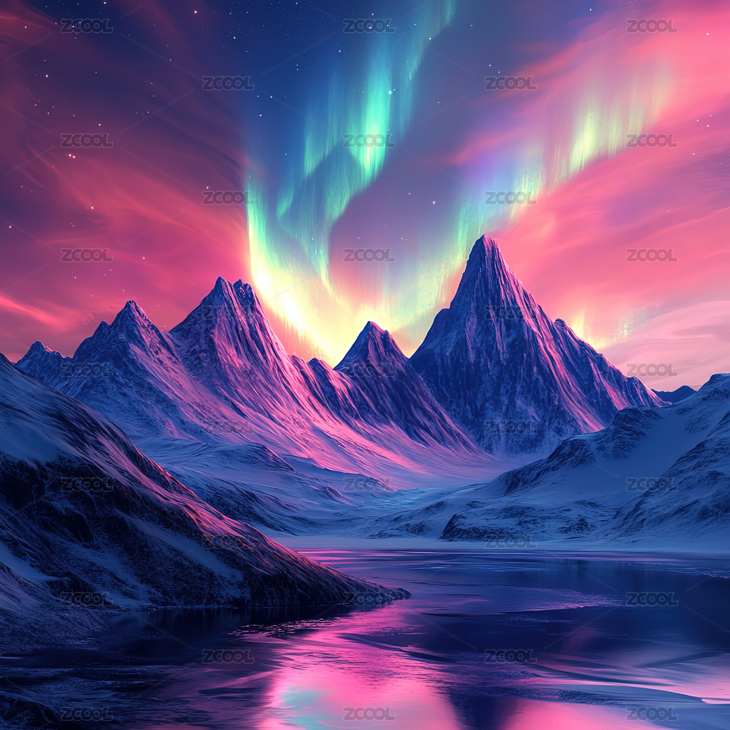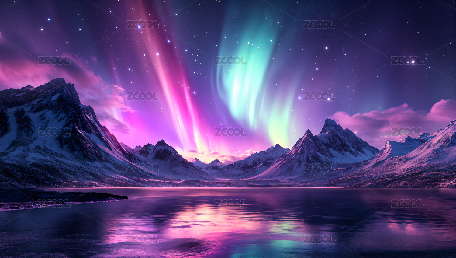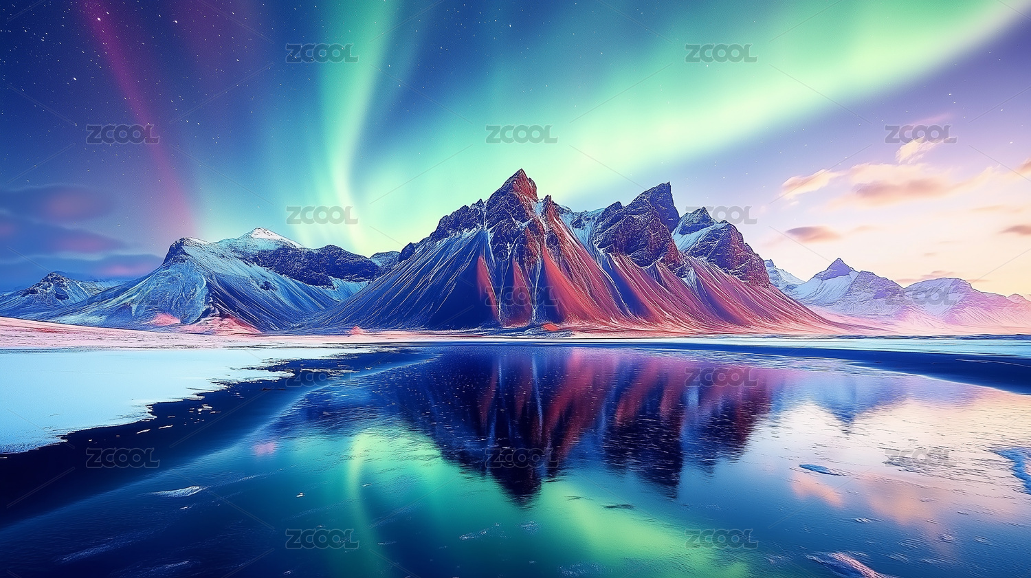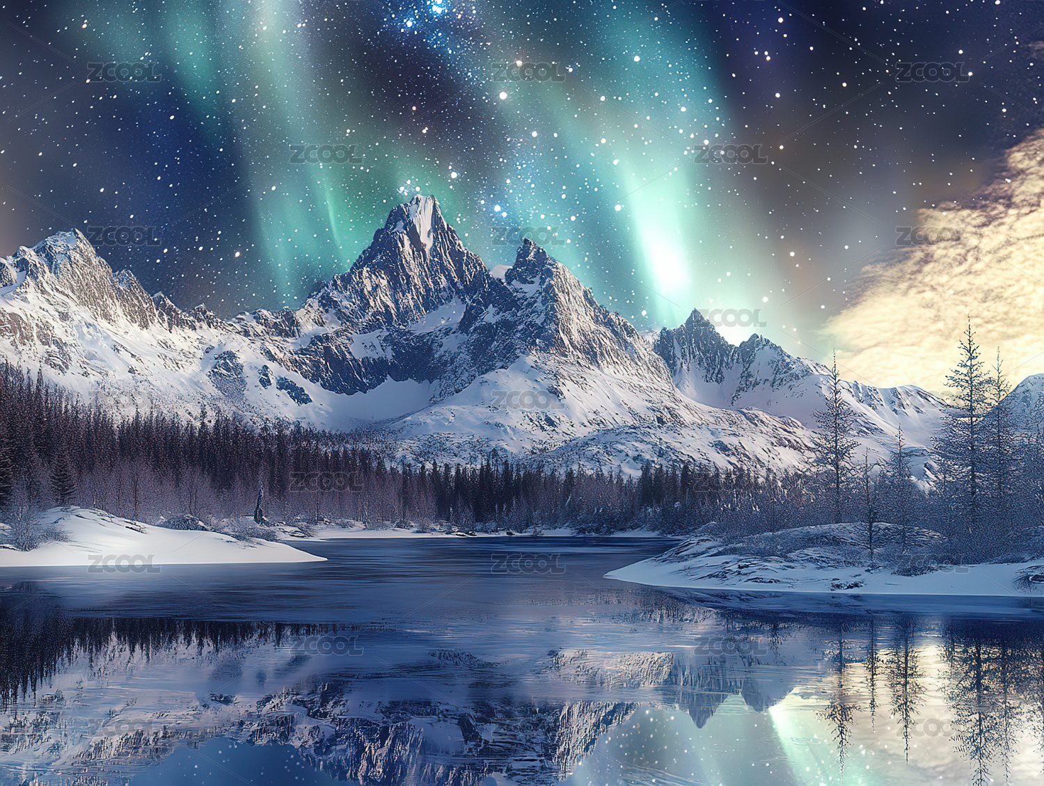 背景,壁纸,风景,夜景,雪山,极光,湖泊,水面,反射,风光