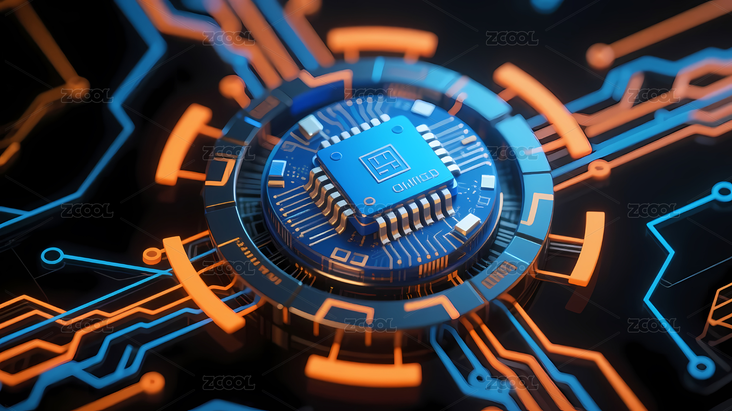 蓝色,电路板,科技,金色,图案,深蓝色,电子芯片,圆形,引脚,板材