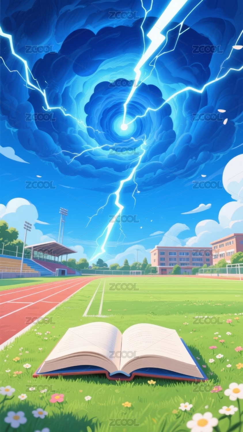 主视觉,场景,自然,建筑,书本,清新,校园,草地,操场,学校