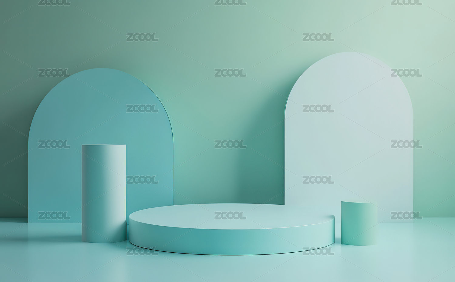 绿色,圆台,展示台,电商,展台,建筑,墨绿色,创意,室内,设计