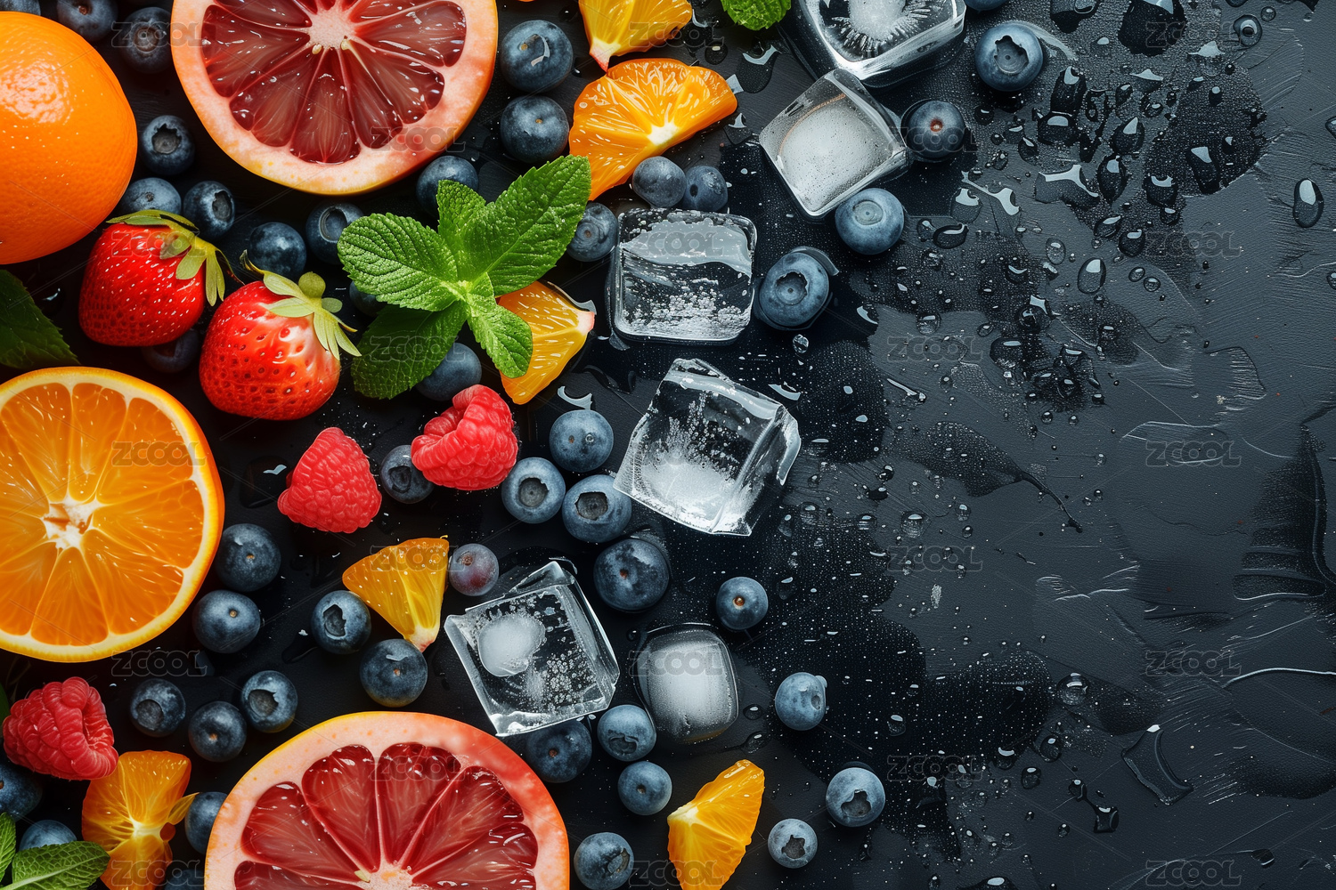 水果,冰块,饮品,夏季,夏天,创意,设计,插画,果汁,蓝莓