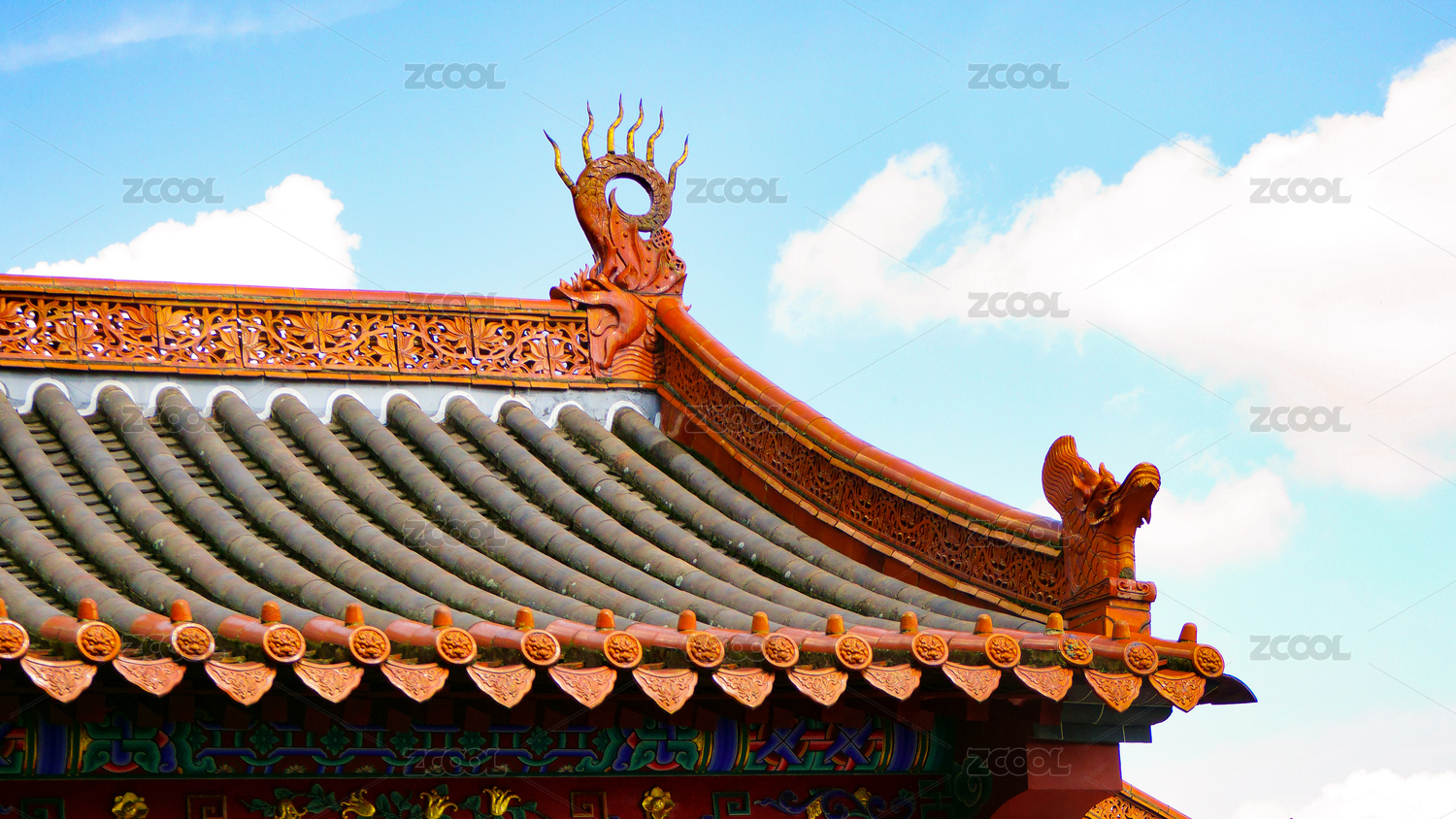 晴朗的蓝天下中国北京故宫博物院宫殿屋檐特写