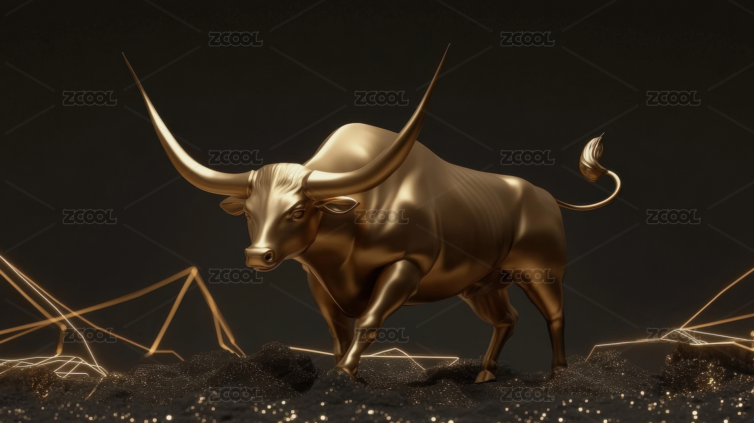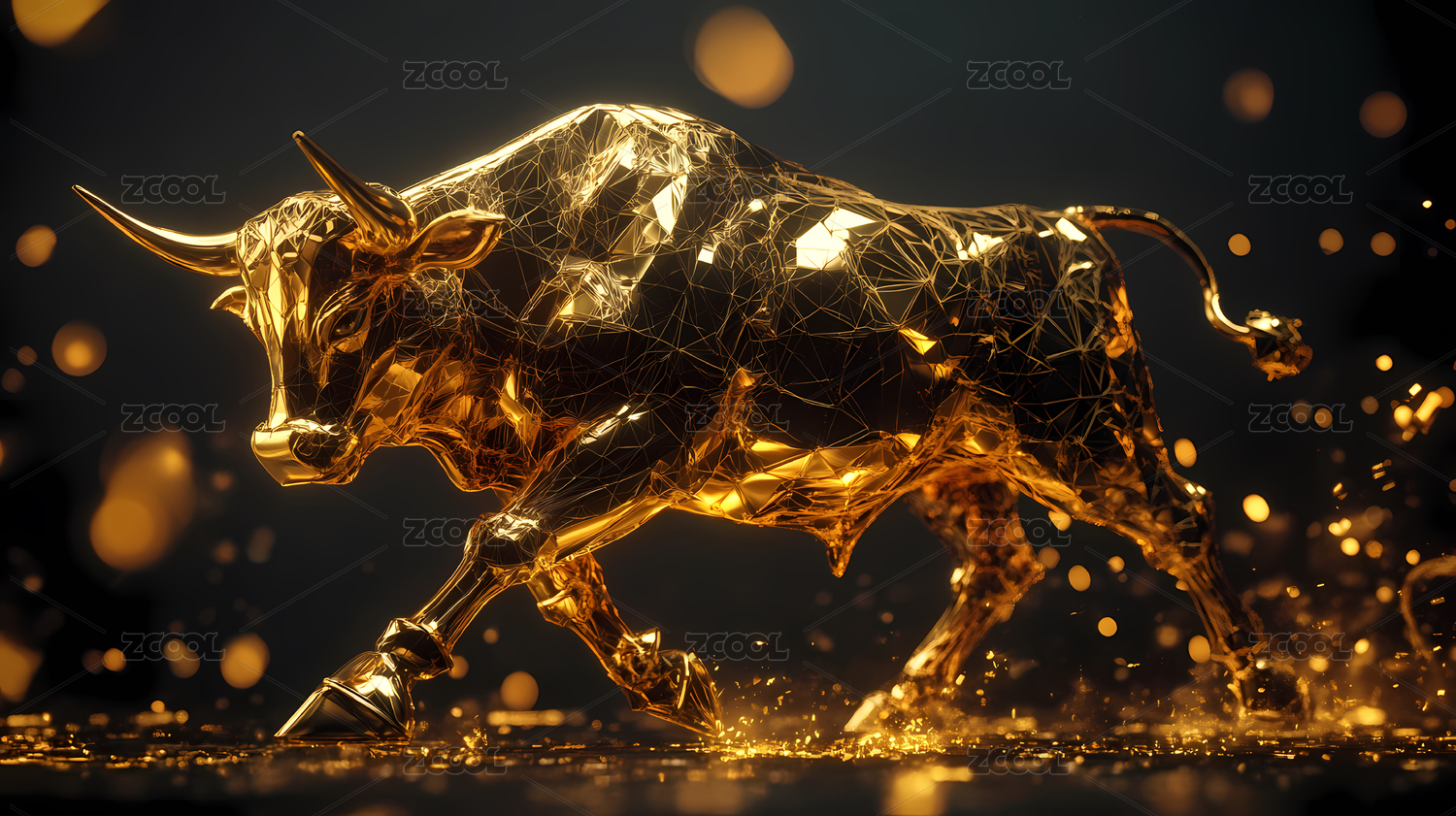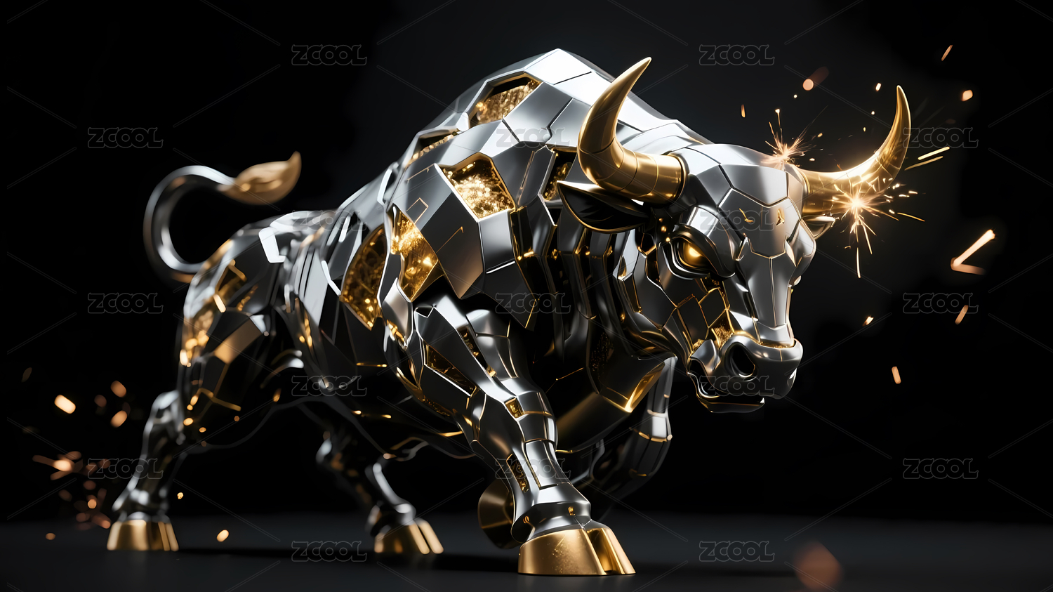 装饰,金属,立体,金色,黑色,雕像,公牛,雕刻,对比,艺术