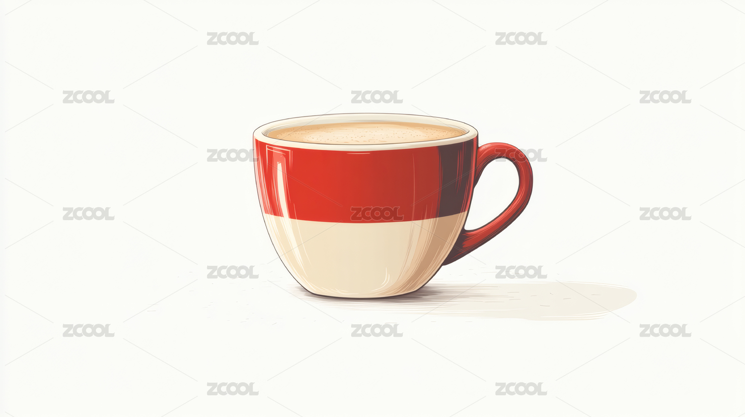 插画风格的热咖啡杯