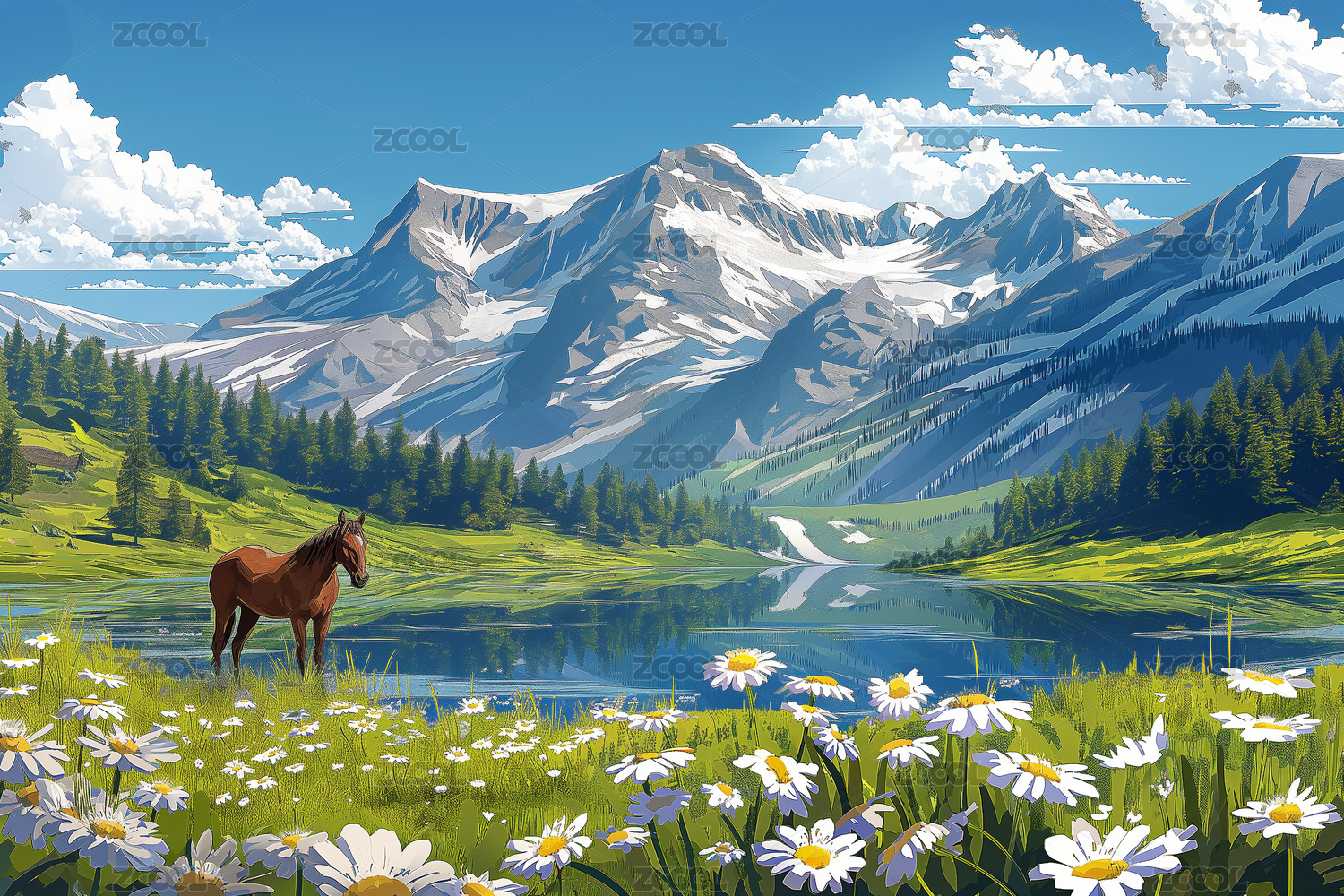 白马草原插画
