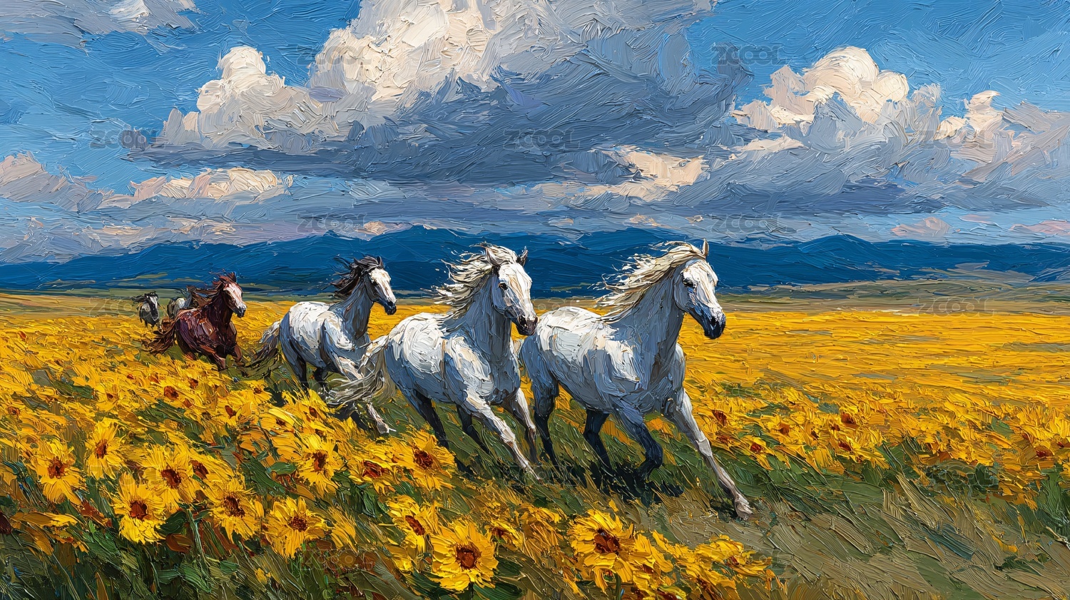 向日葵田中奔跑的骏马
