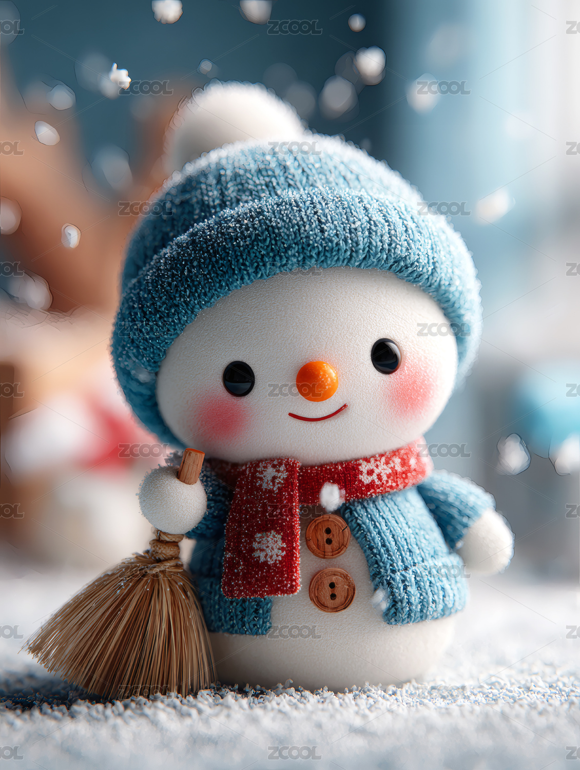 一个拿扫帚的可爱小雪人