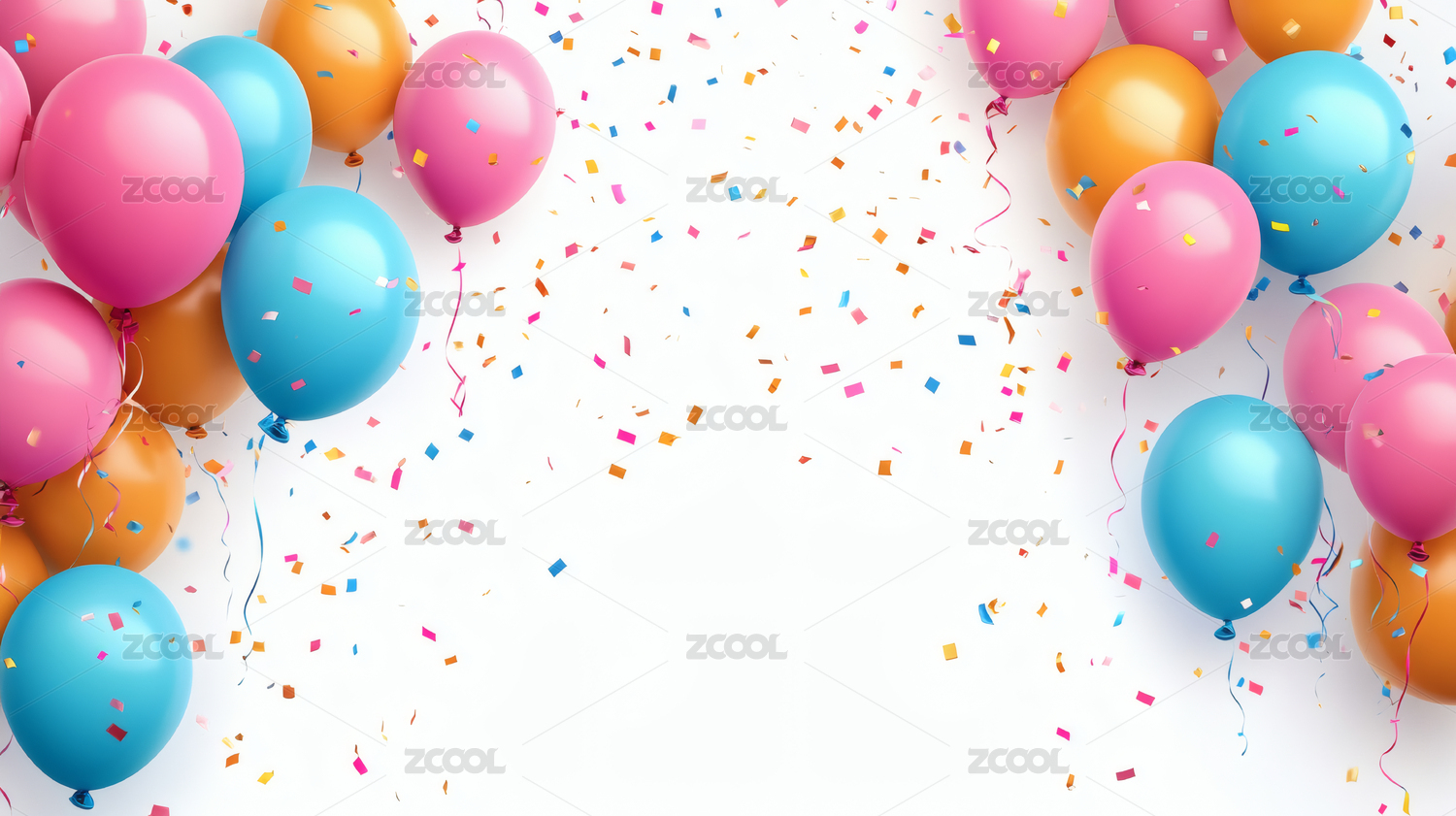 卡片,气球,彩带,纸屑,派对场景,庆祝背景,节日布置,活动现场,漂浮,卷曲