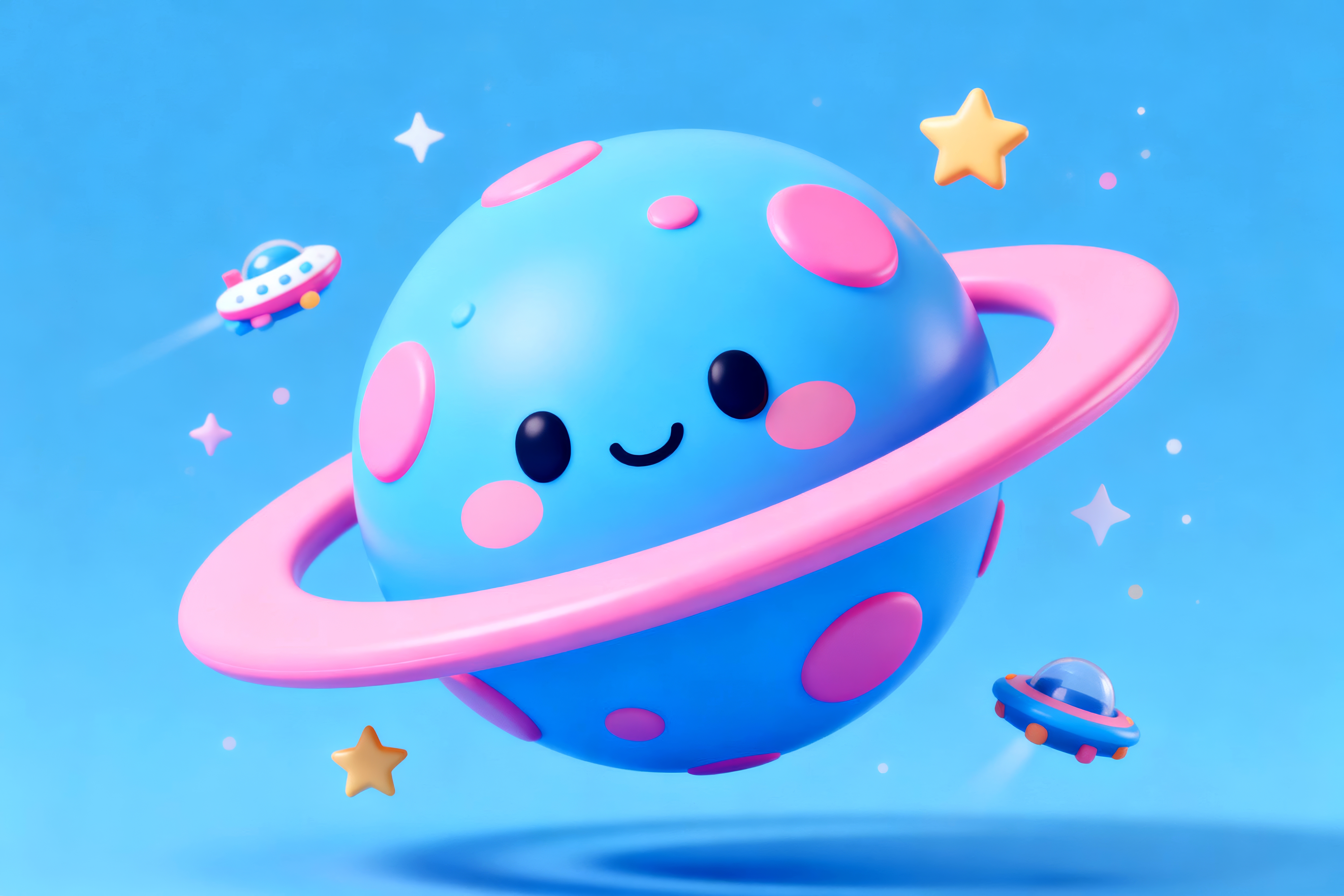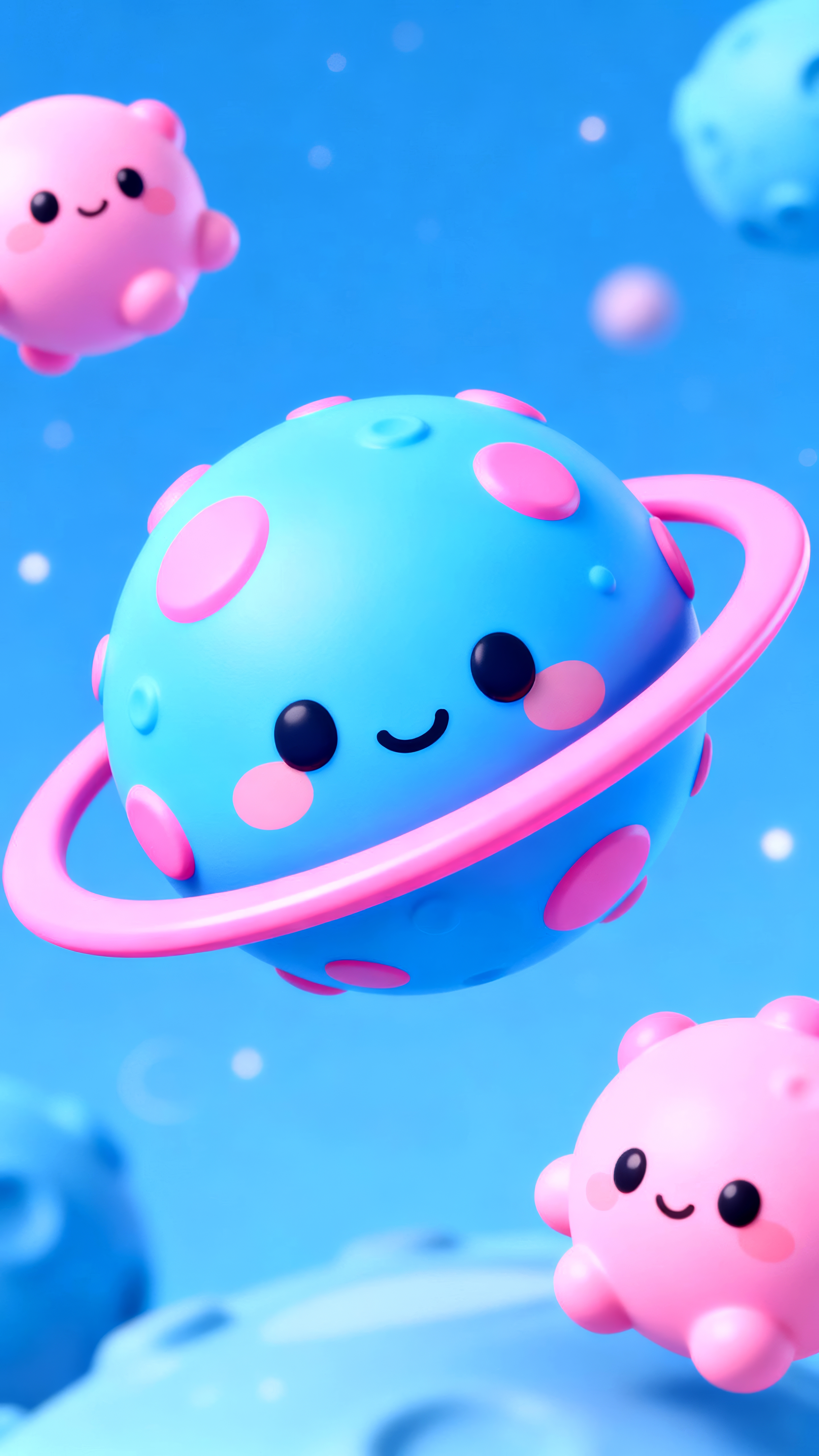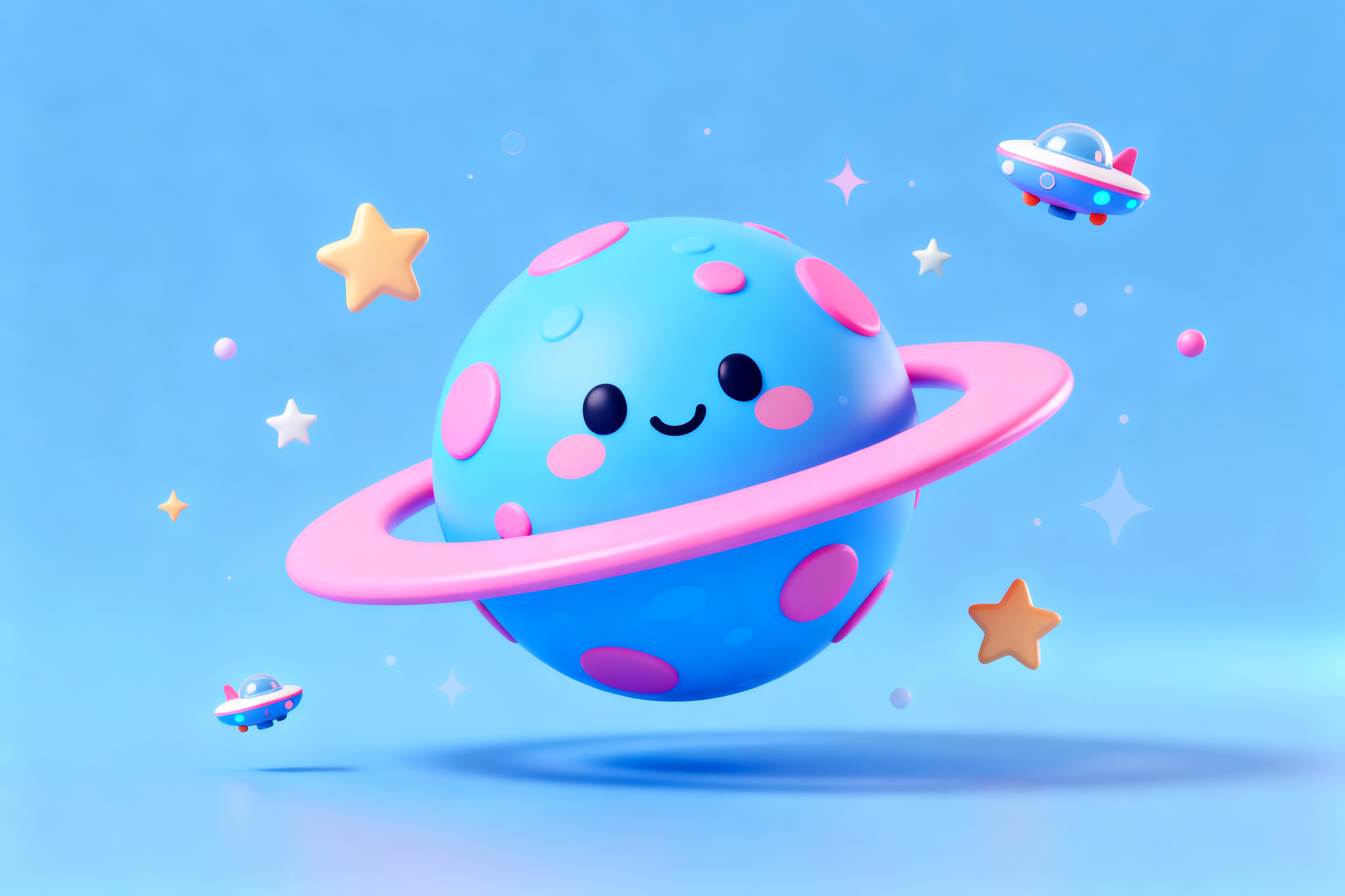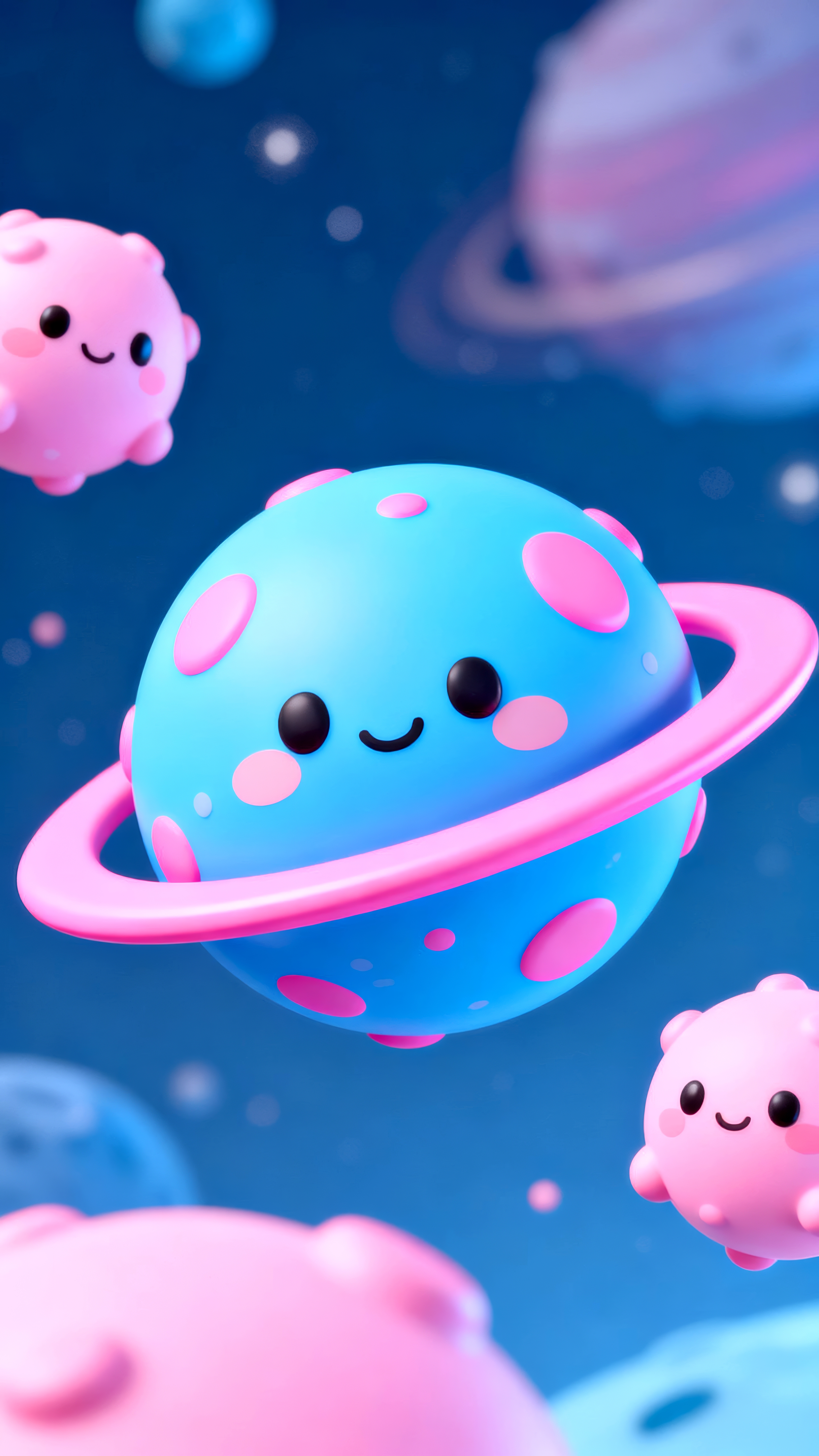 三维立体可爱的星球和笑脸,宇宙星球插画