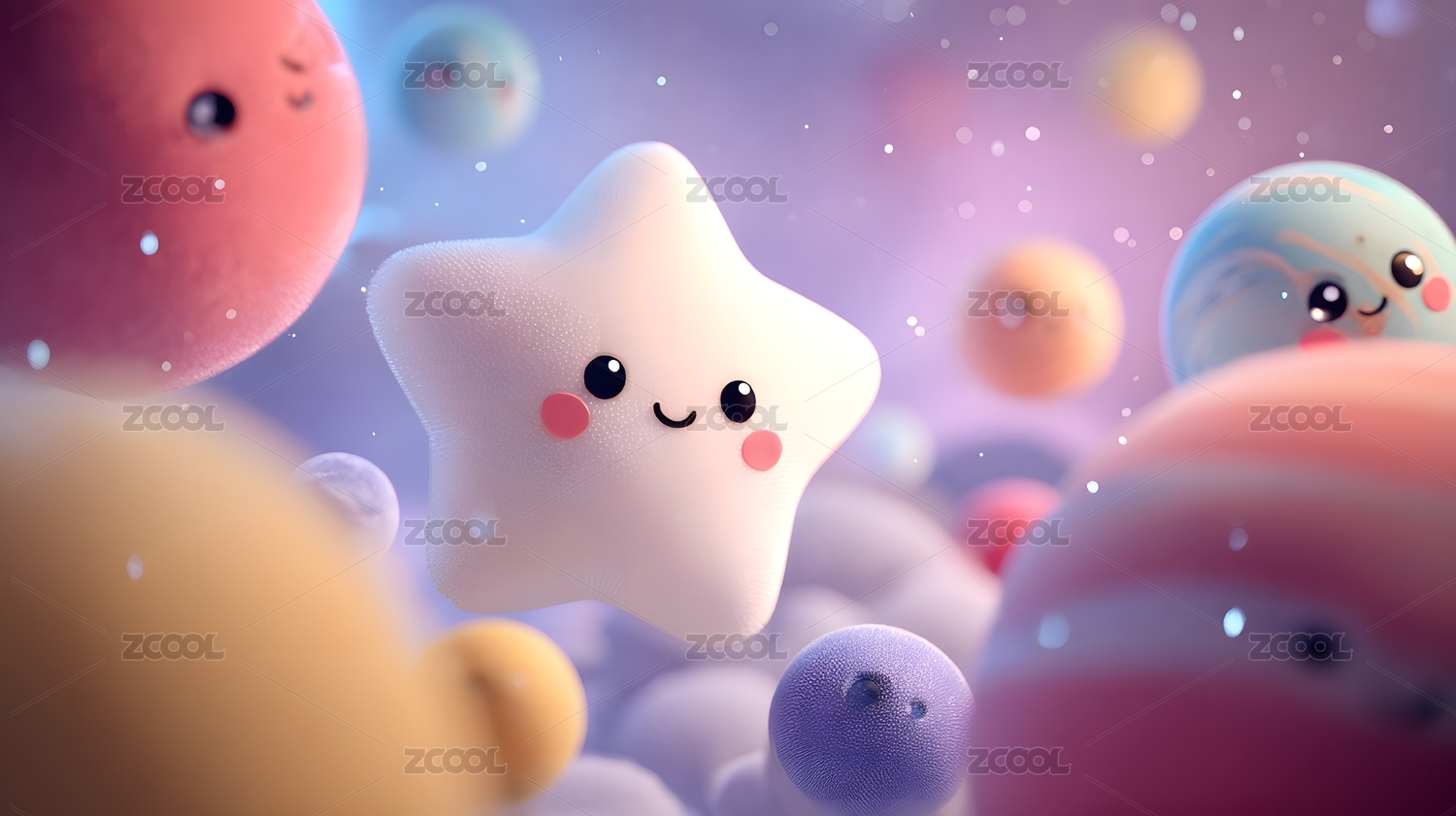 卡通星星与球体角色在星空背景