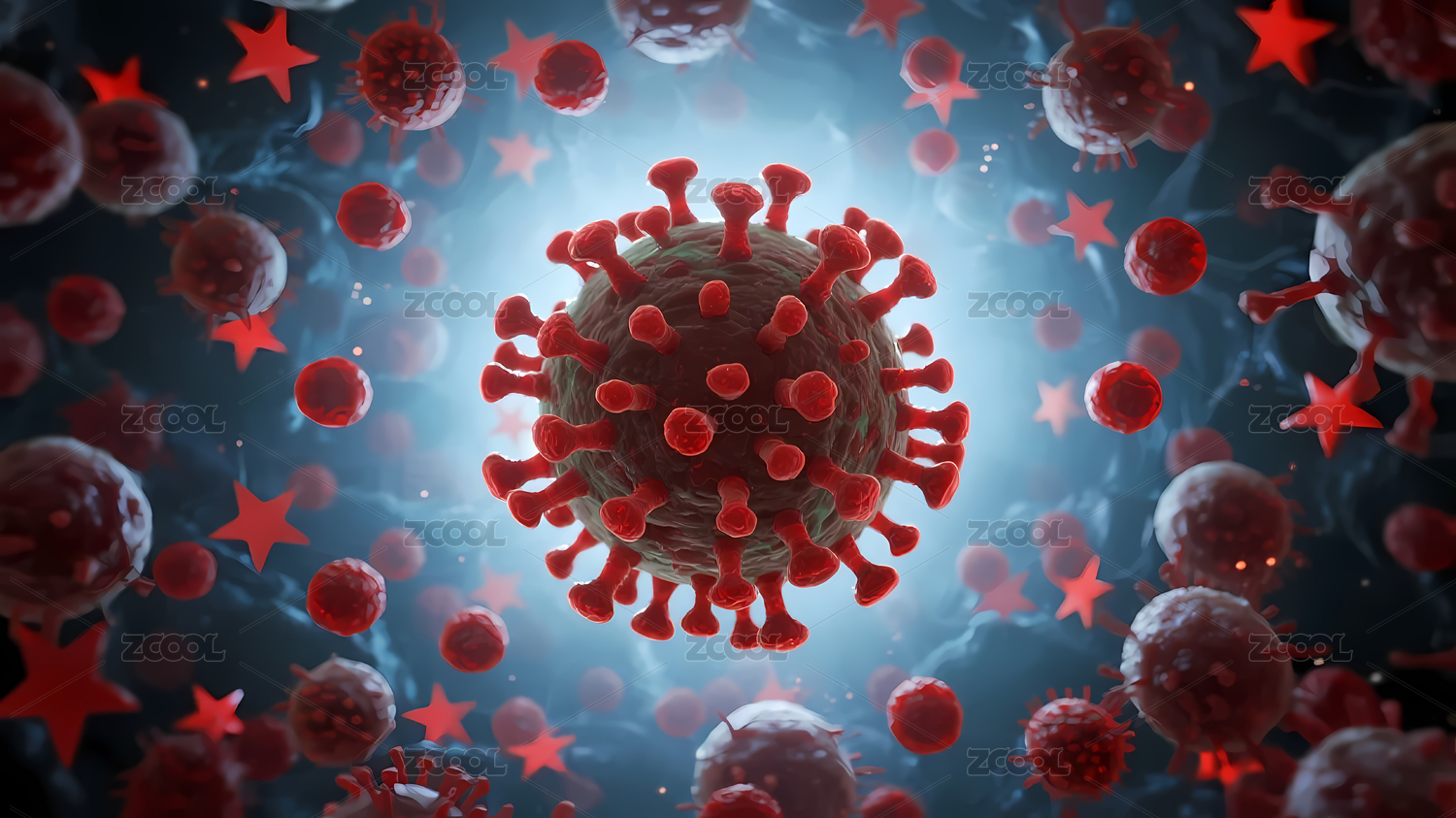 蓝色,病毒,颗粒,红色,突起,深色,科幻,结构,细节,微观