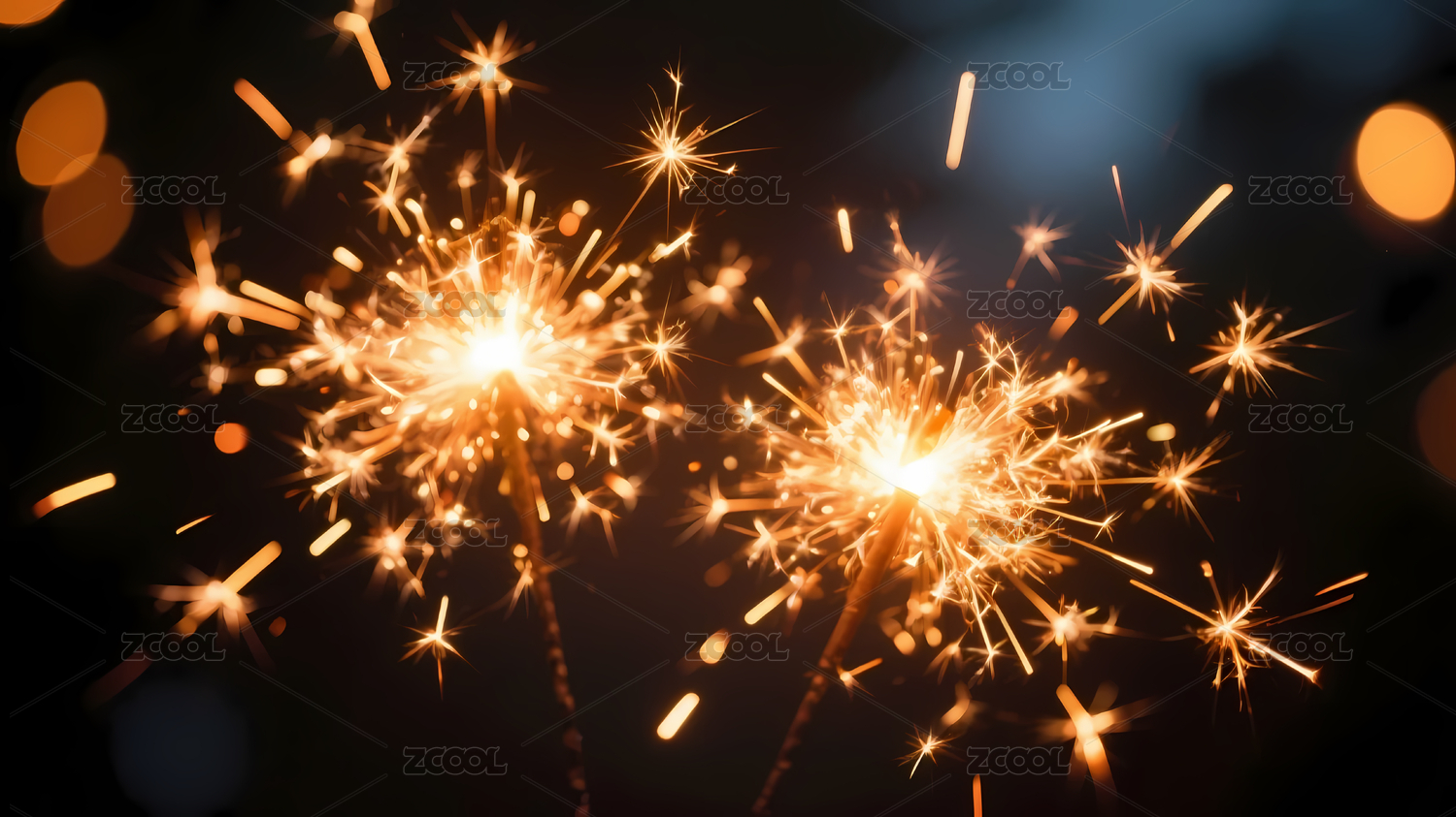 橙黄烟花黑色光斑背景