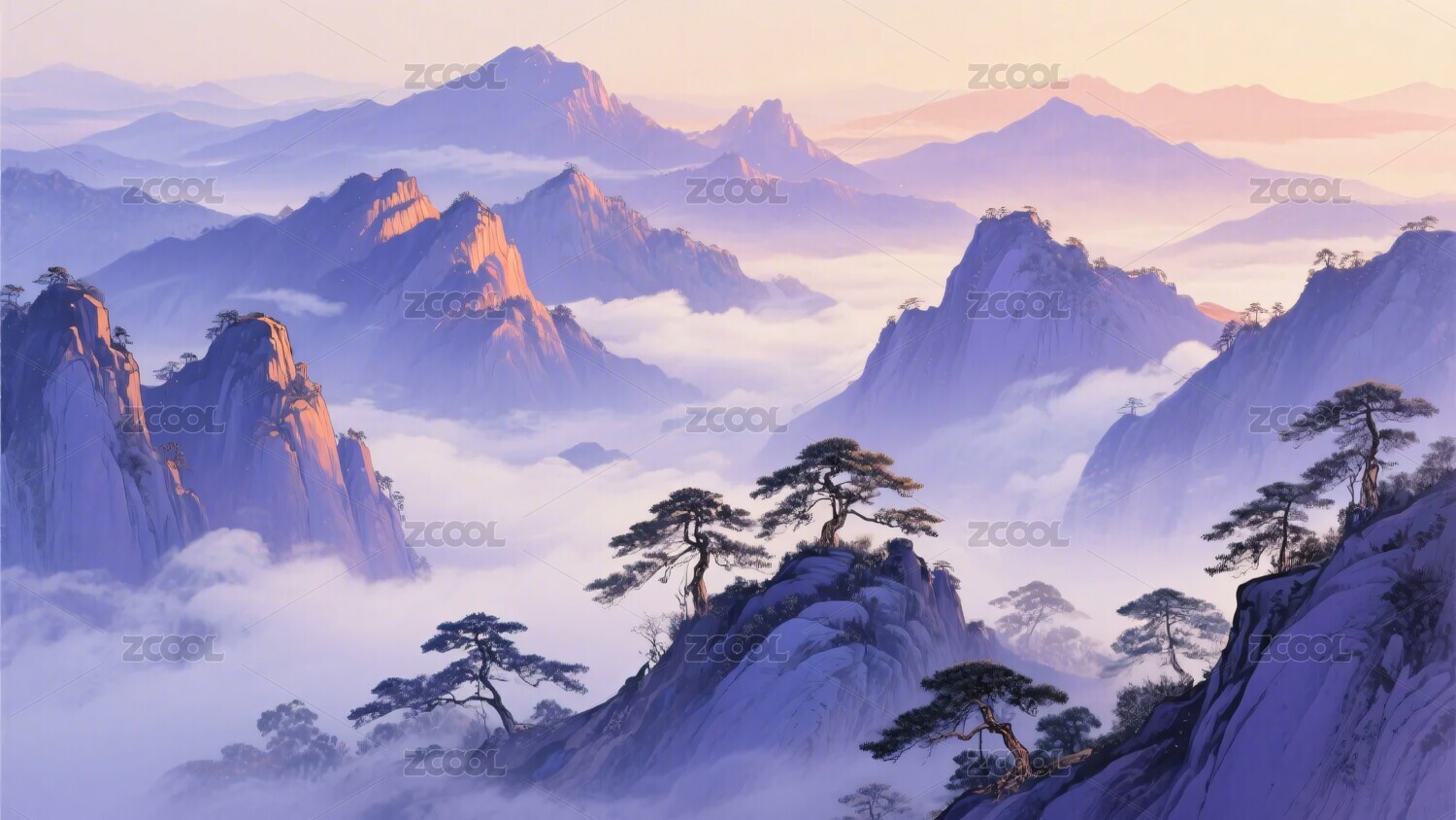 风景,树木,唯美,意境,山峰,云雾,朦胧,寺庙,中国风,红叶