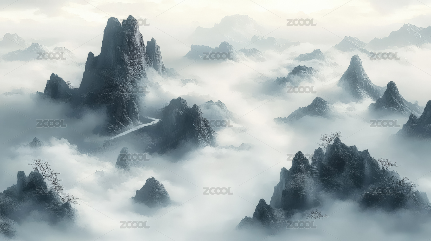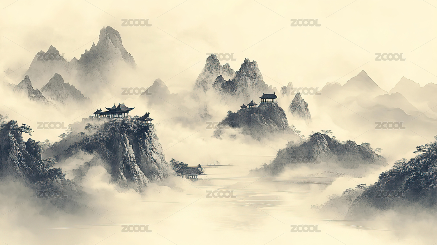 意境,山峰,山峦,山川,水墨风,中式,中国风,装饰画,云雾,风景
