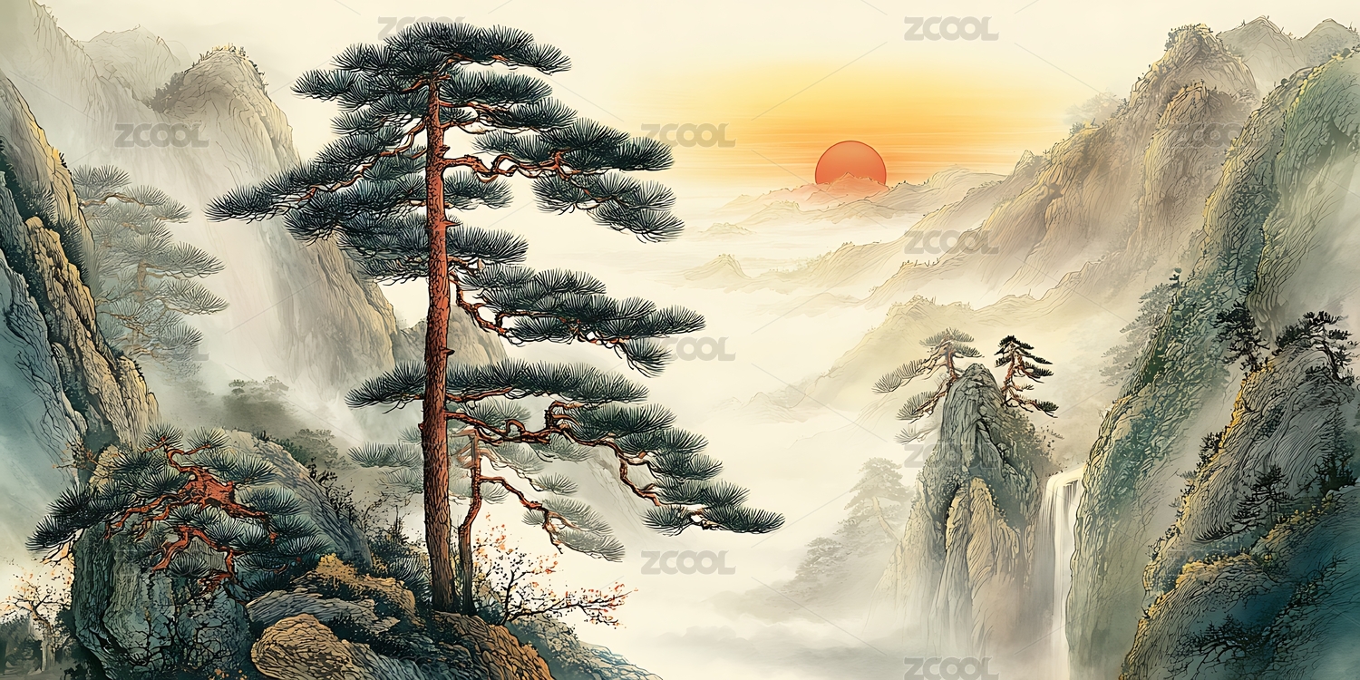 山水松树图