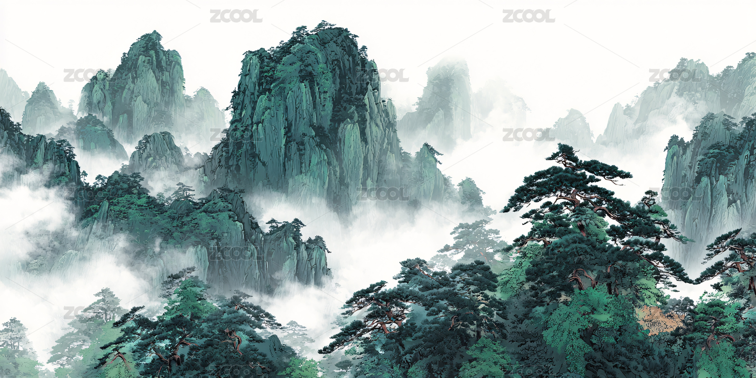 意境,中山,国风,水墨画,装饰画,水墨,云雾,树木,山峰,清新