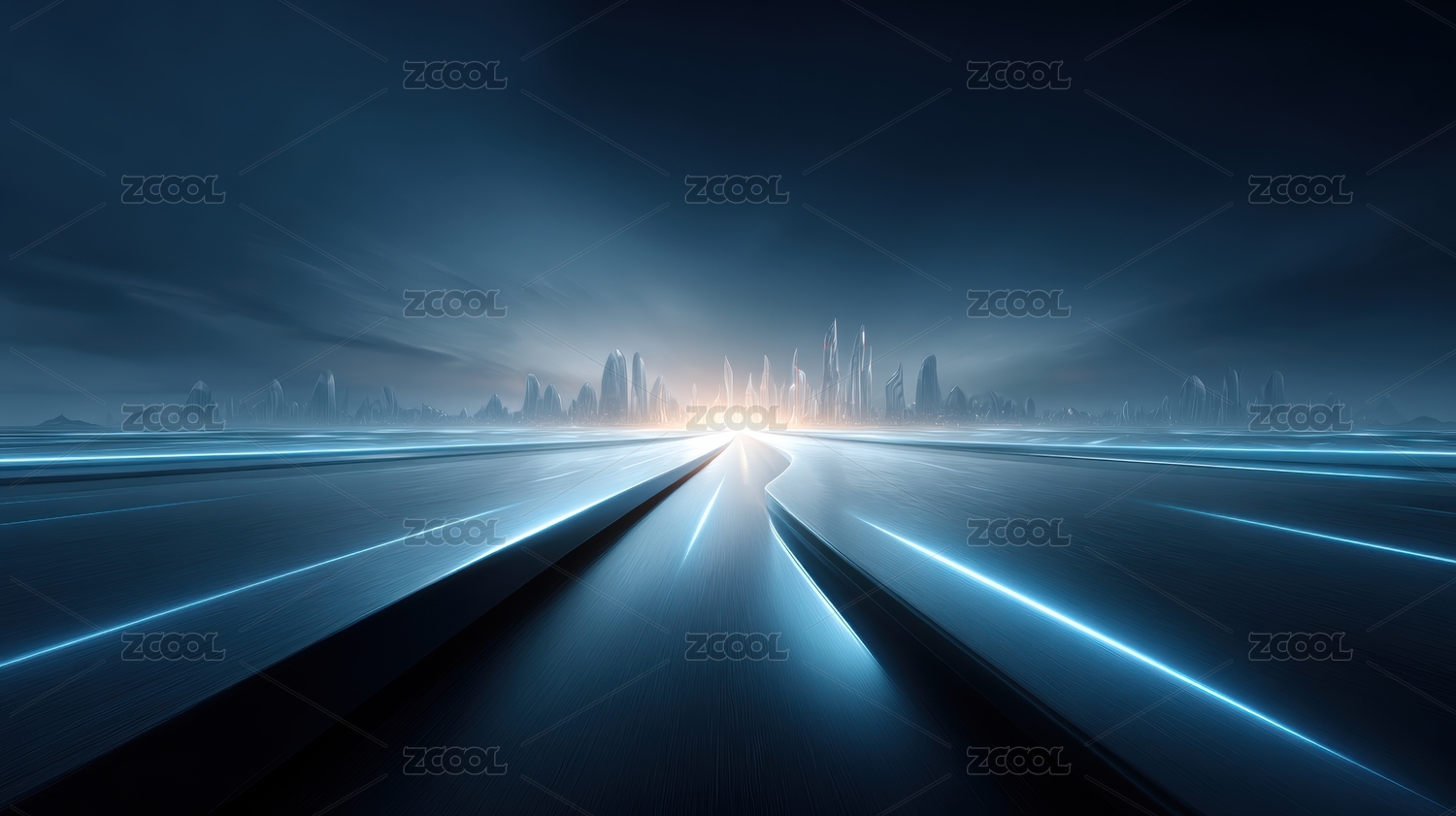 光影,科技,蓝色,未来感,道路,夜晚,灯光,城市,高速,夜景