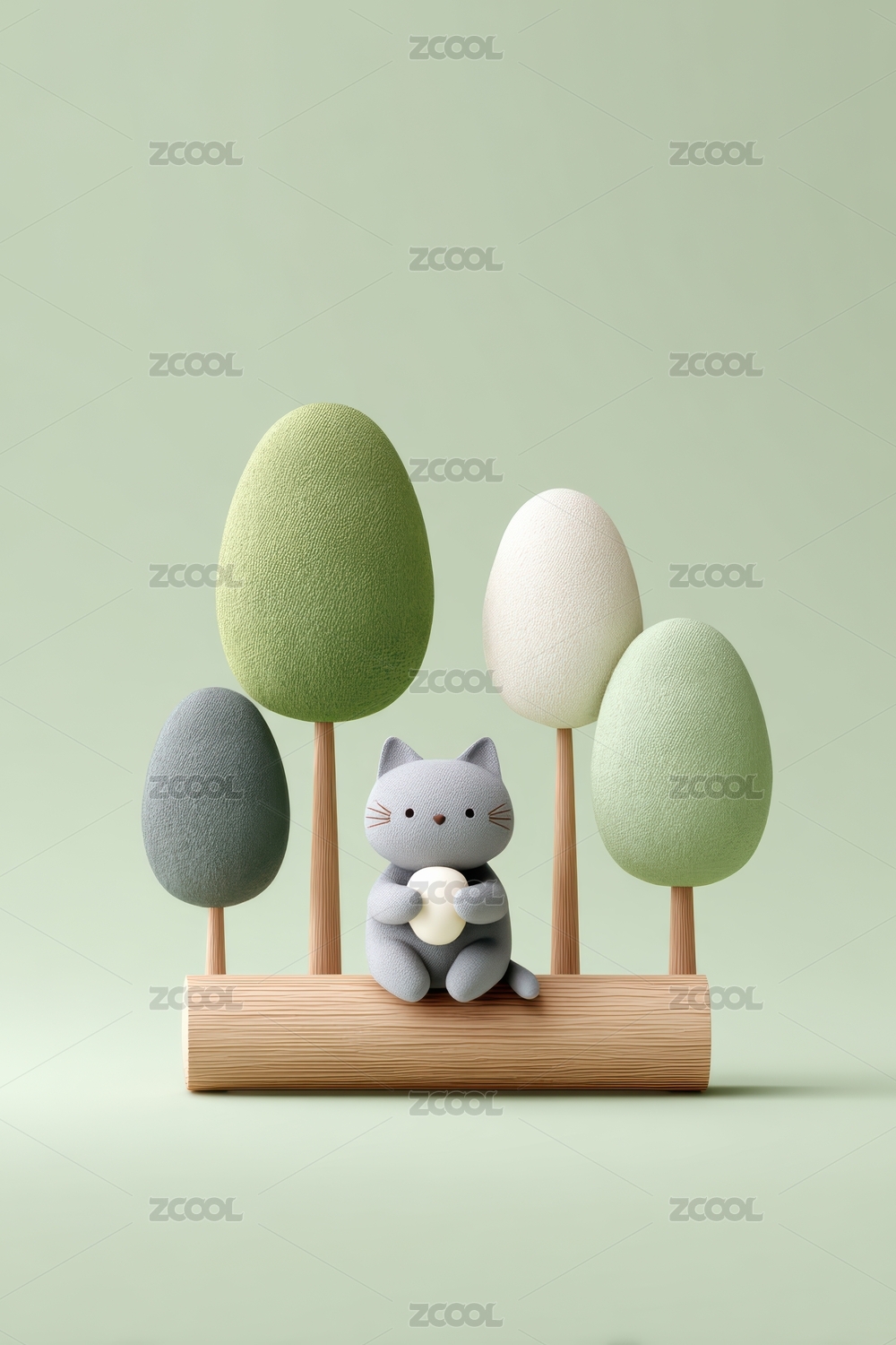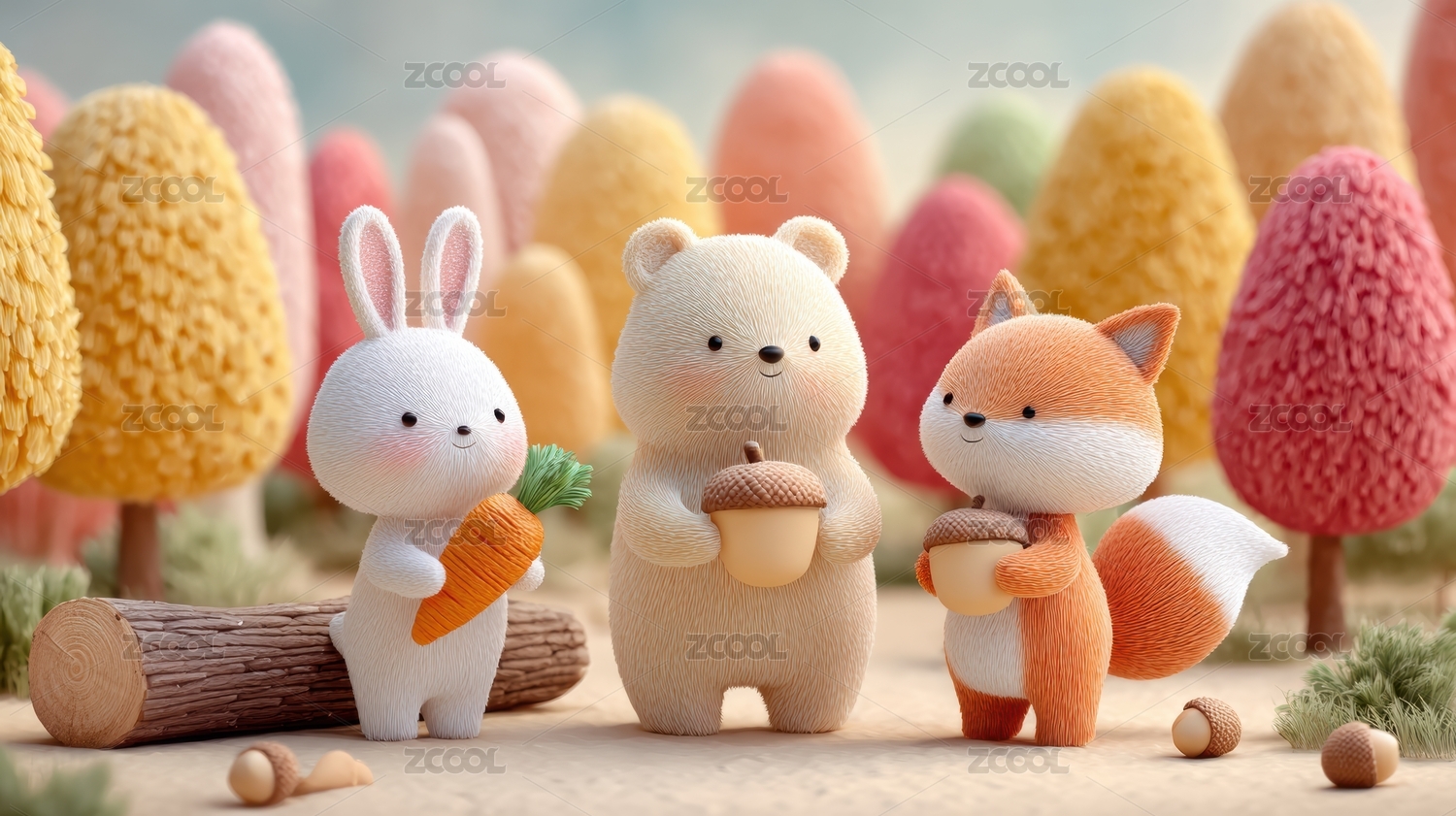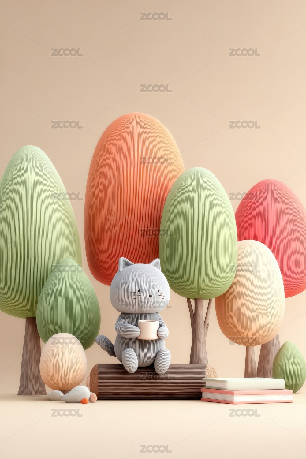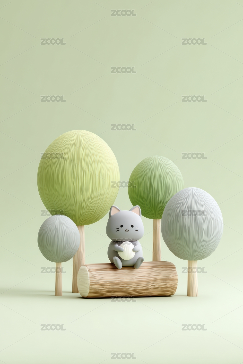 中秋节3D可爱卡通小白兔坐在树下的场景