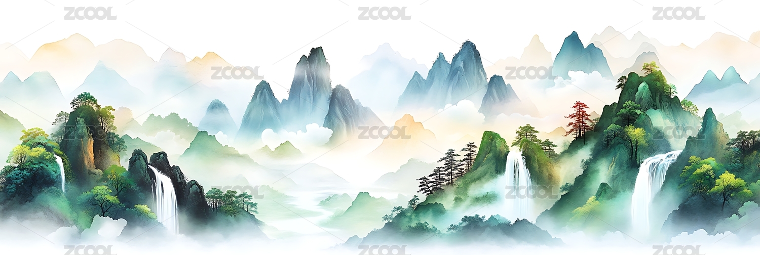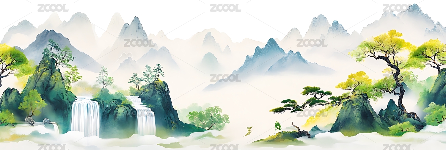 青绿山水云雾缭绕