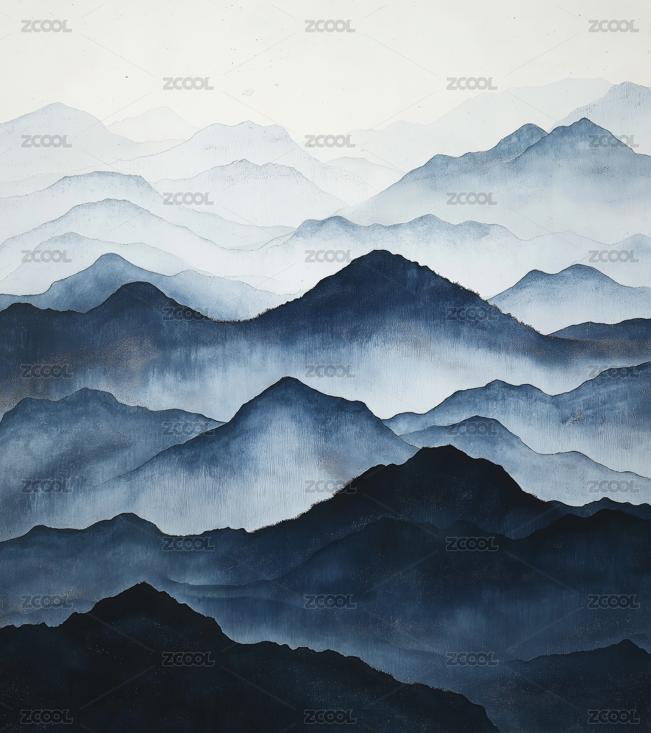 云雾,意境,山峰,水墨,唯美,层次,色彩,蓝色,纹理,巍峨