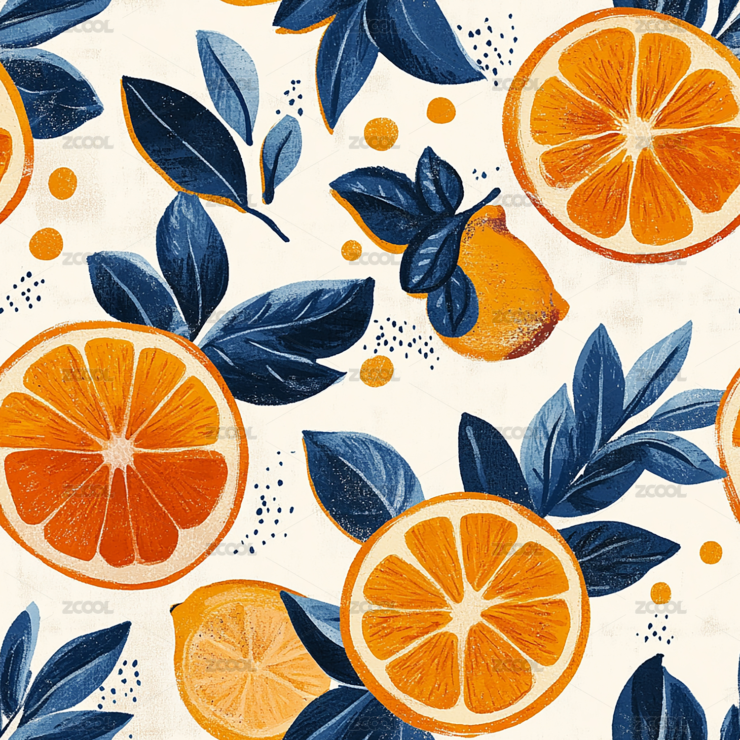 平铺,图案,四方连续,无缝,水彩,平面,橙,柑橘,叶子,鲜花