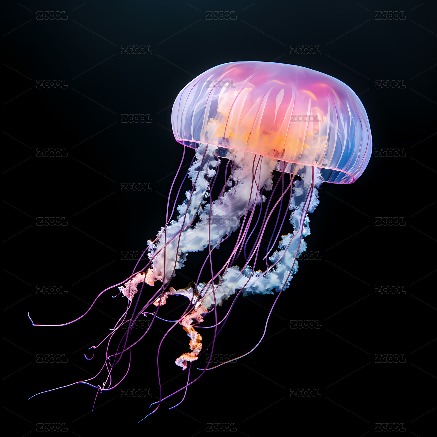 炫彩水母特写摄影装饰艺术设计素材