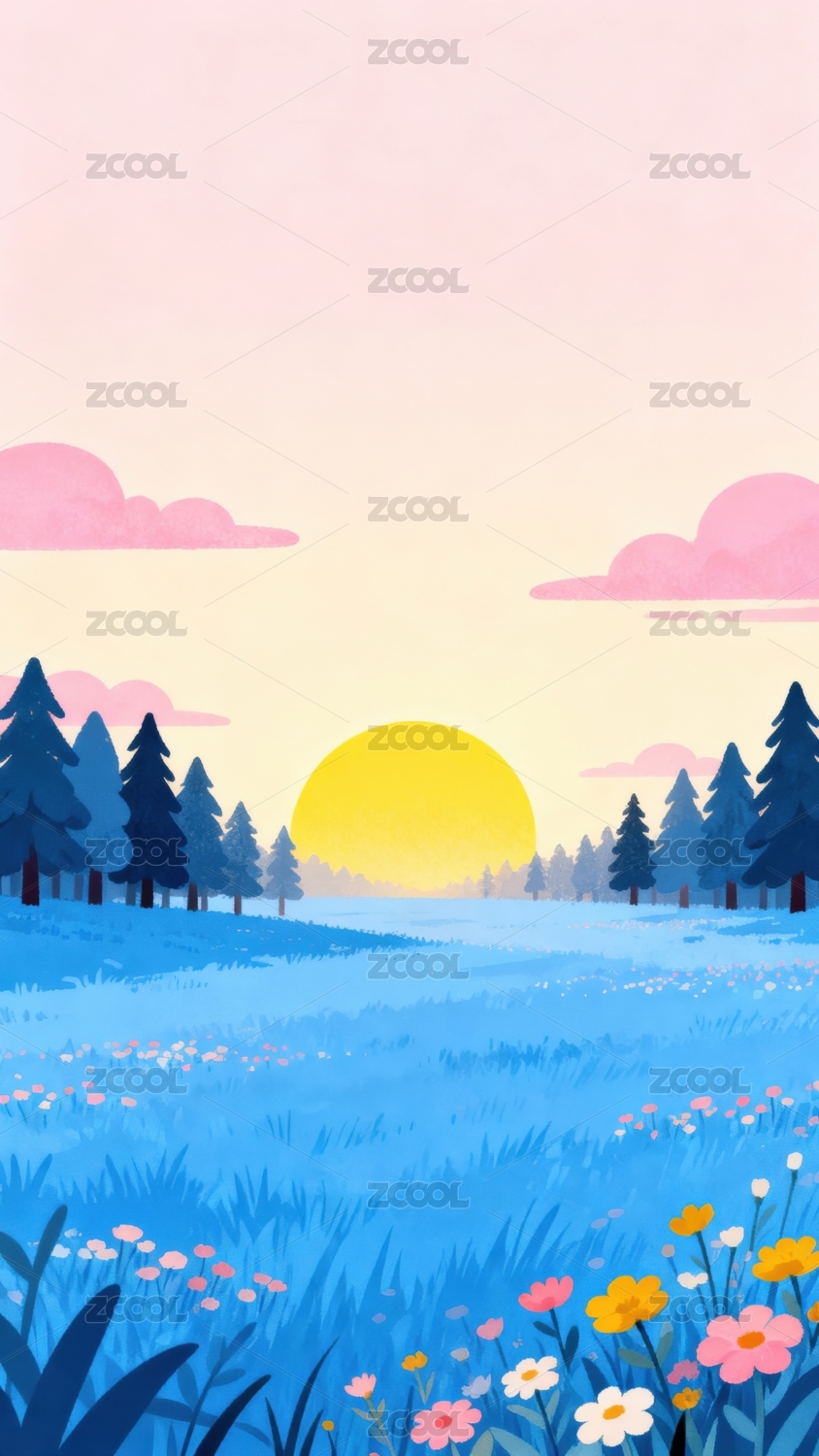 日出草原花海美景