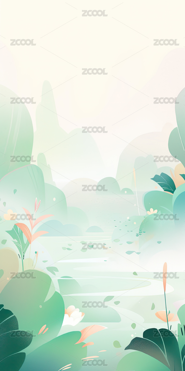 淡彩水墨国风山水系列之春夏翠绿