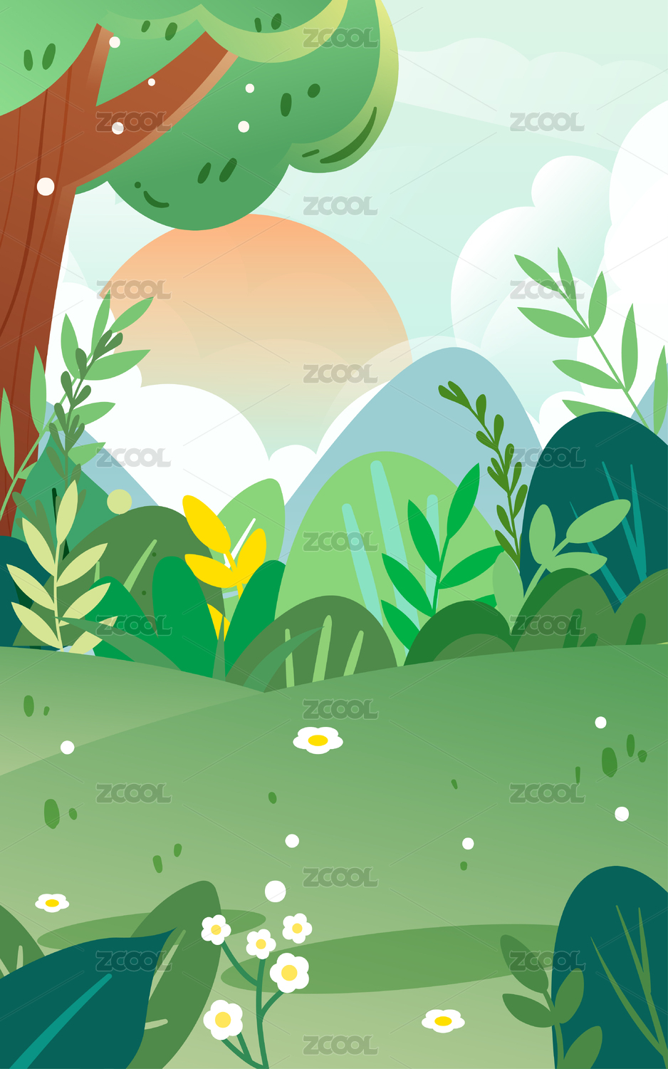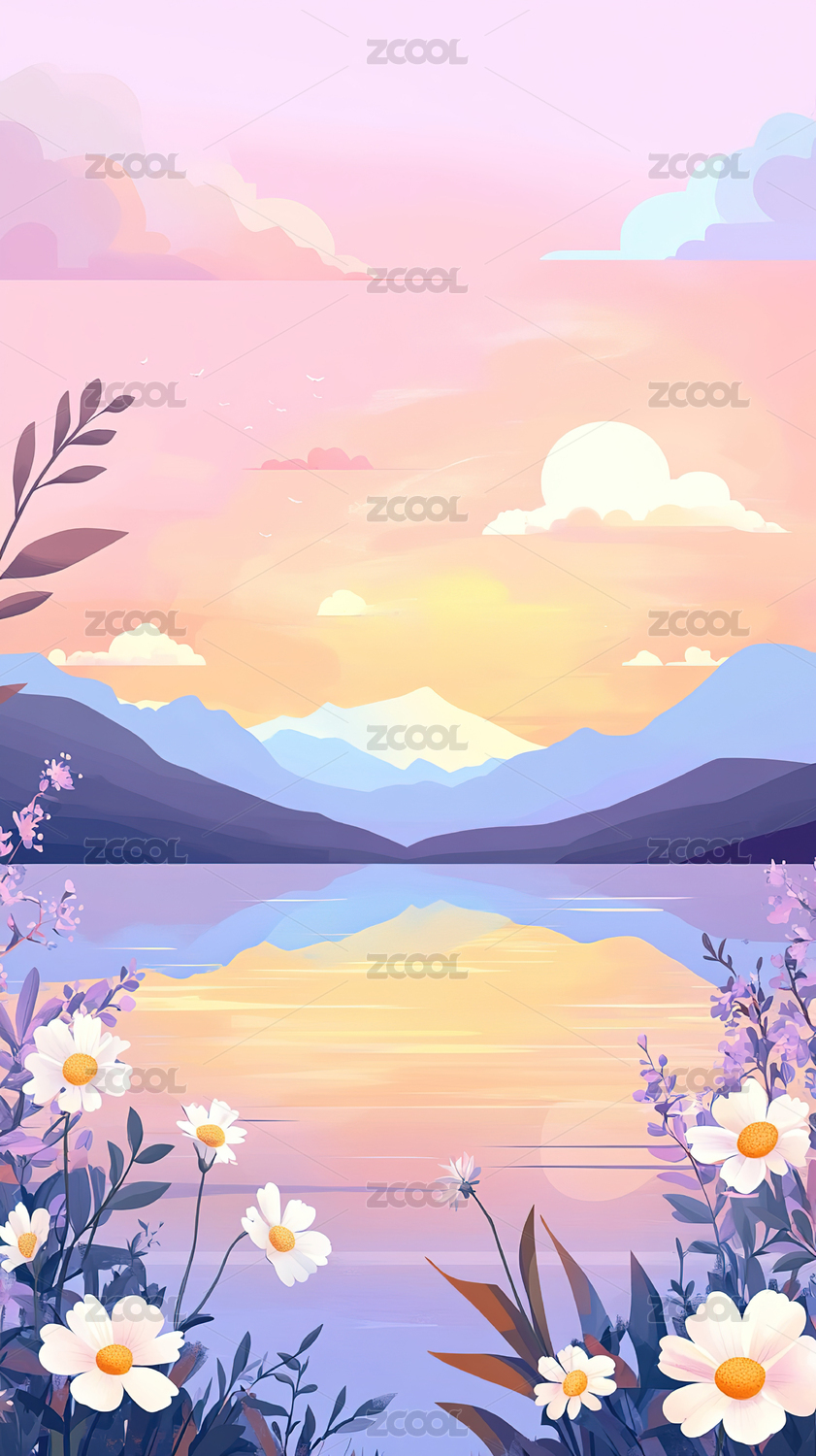 春天自然风景唯美插画