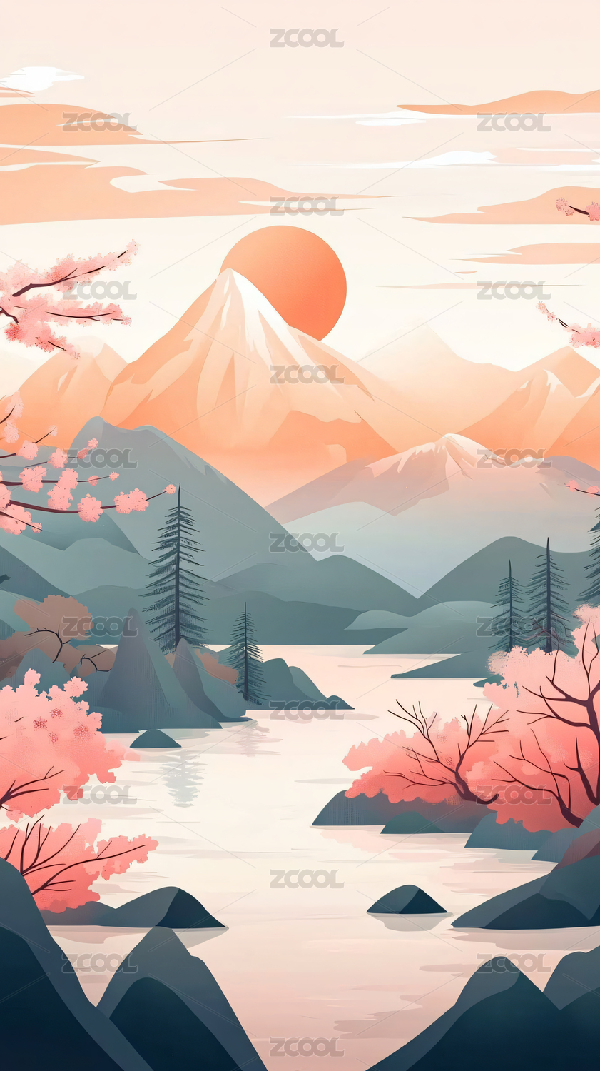 缥缈的群山山河风景,日本浮世绘艺术