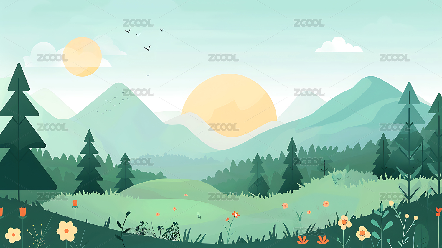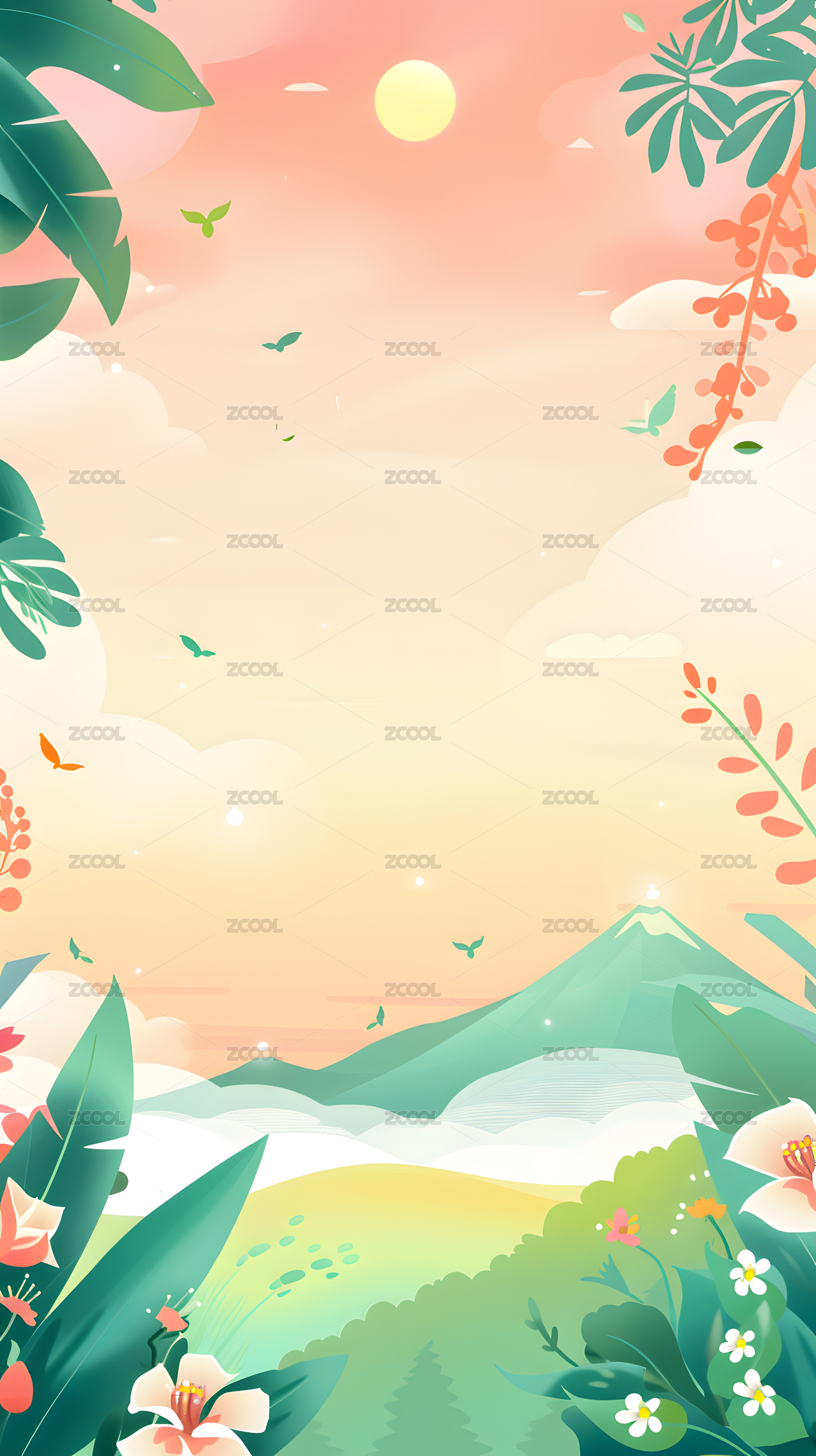 扁平噪点炎热的夏季山林风景