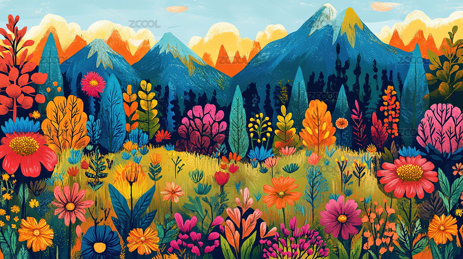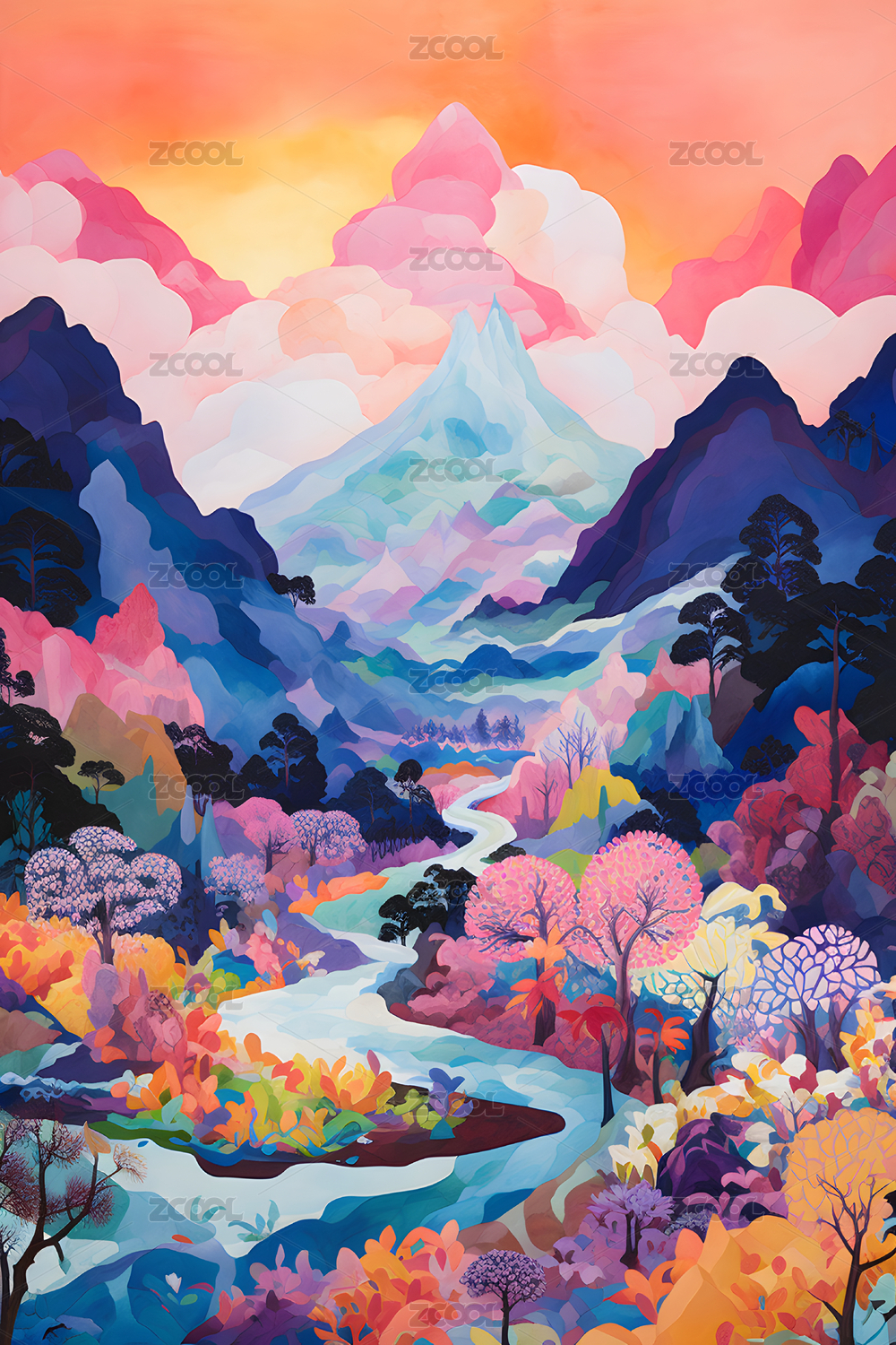 彩色山脉插画海报背景