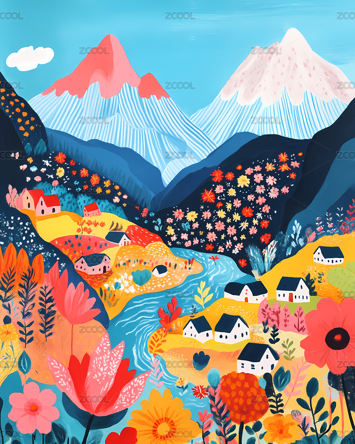 色彩缤纷的山谷花溪