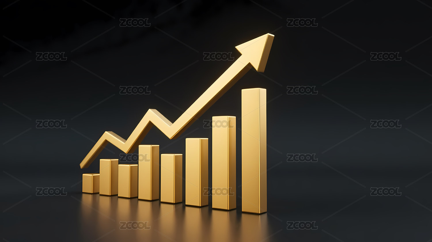 蓝金色渐变玻璃质感金融柱状图增长箭头背景