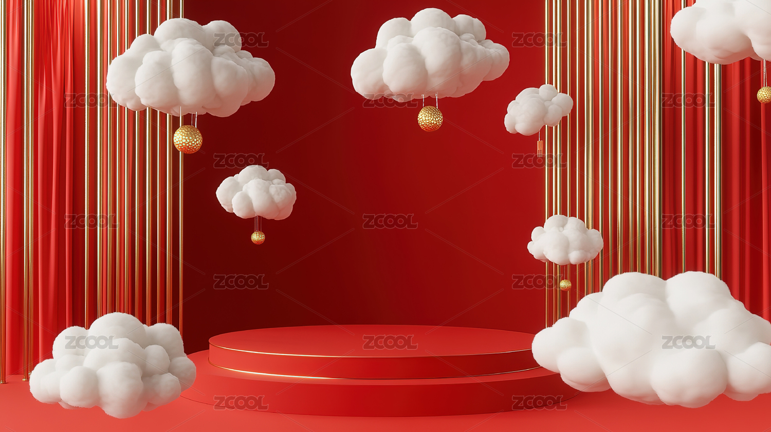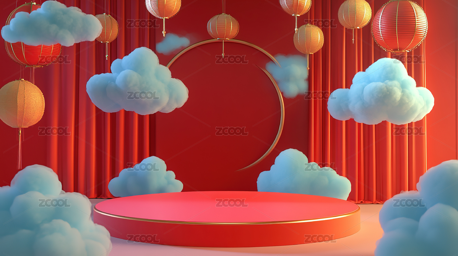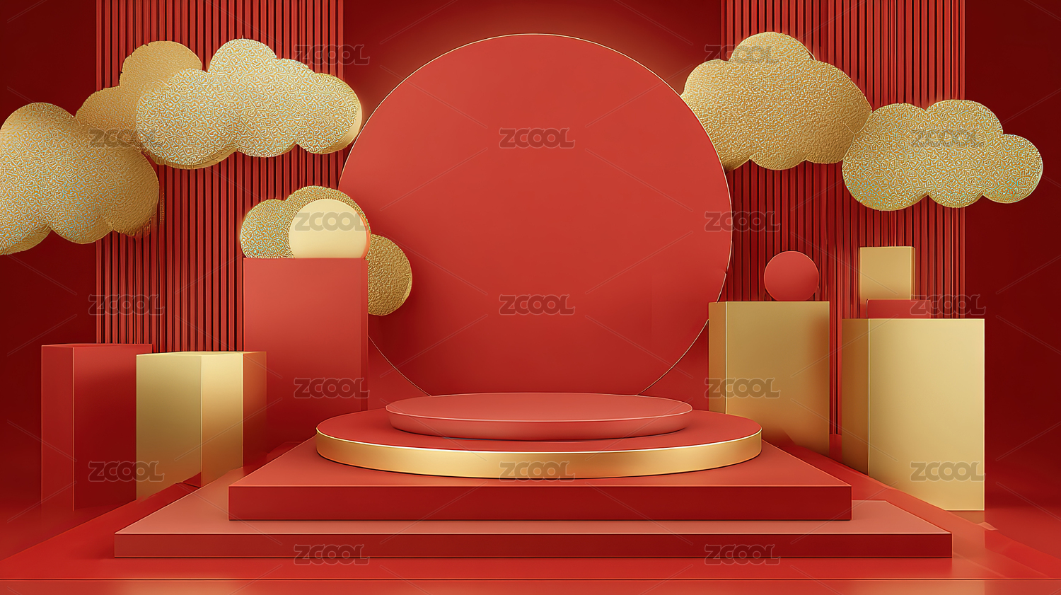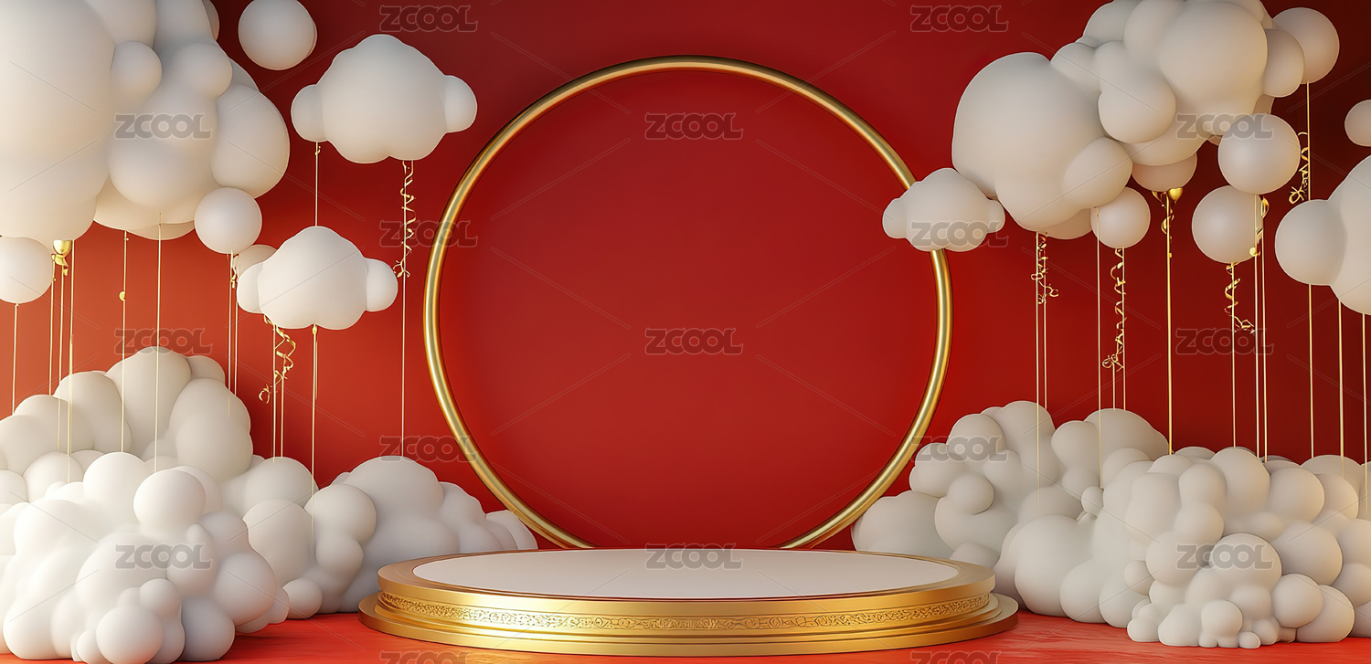 红色新年喜庆风环形展台壁纸