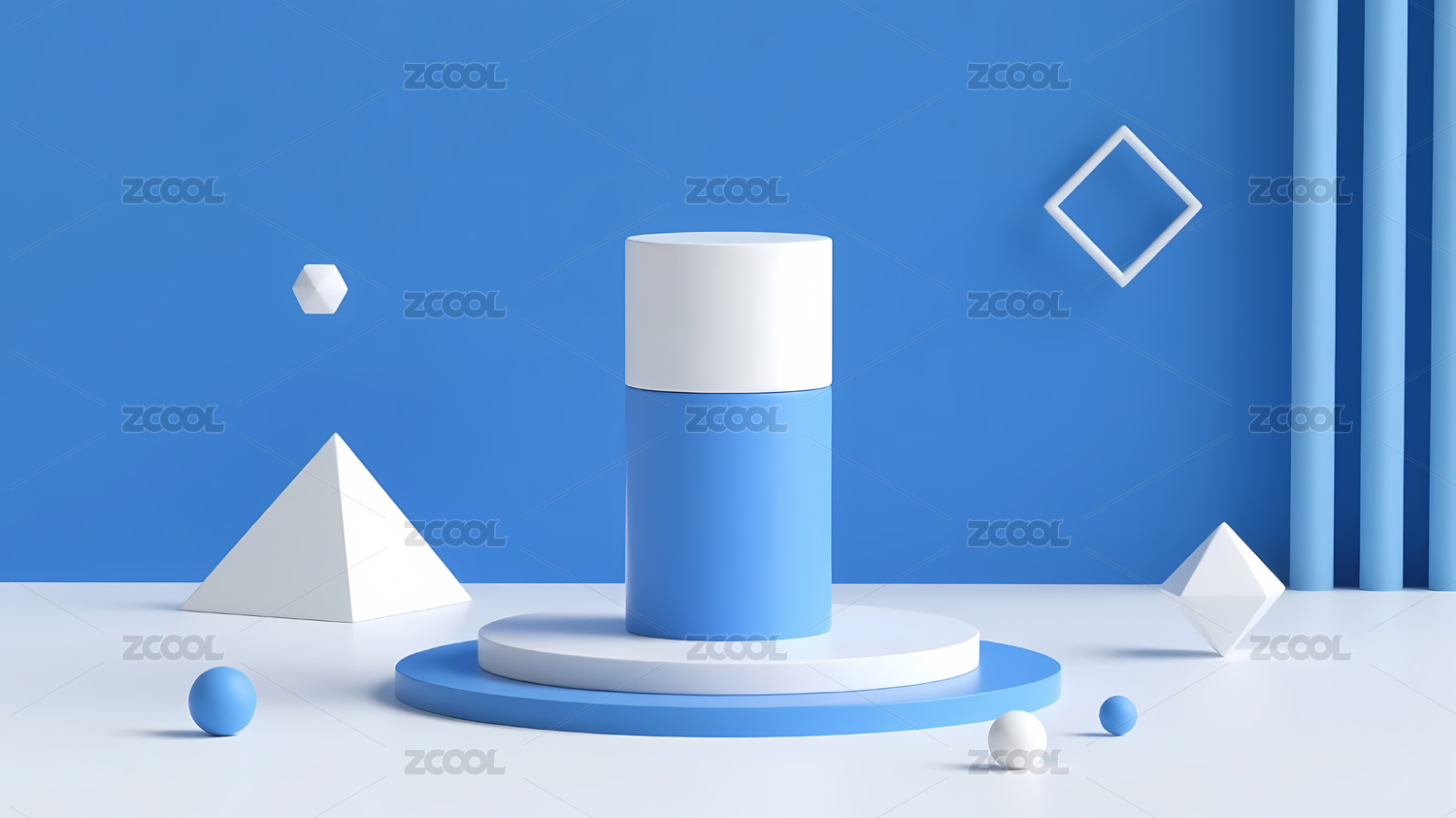 蓝白圆柱与几何装饰