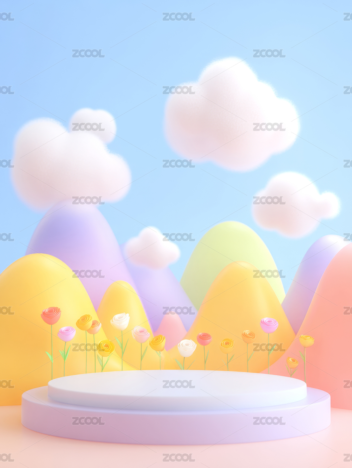 梦幻,田园,舞台,花朵,云朵,天空,色彩,柔和,自然,背景