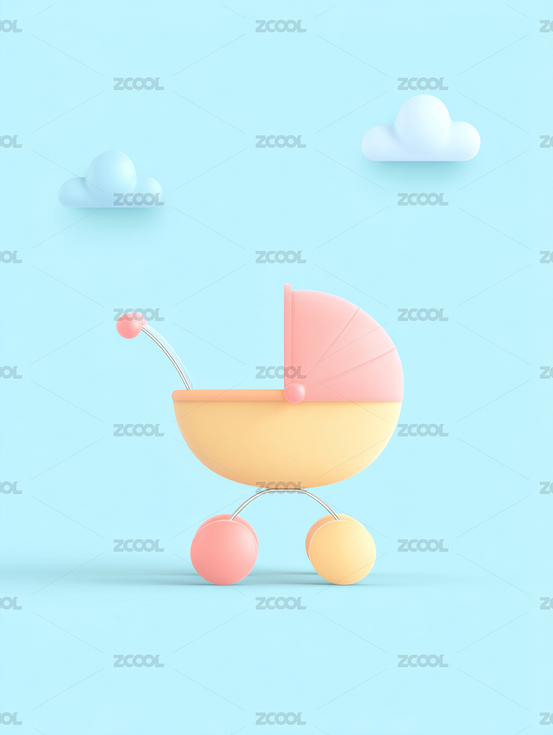 婴儿车,黄色,紫色,背景,轮子,手柄,卡通,简洁,现代,设计