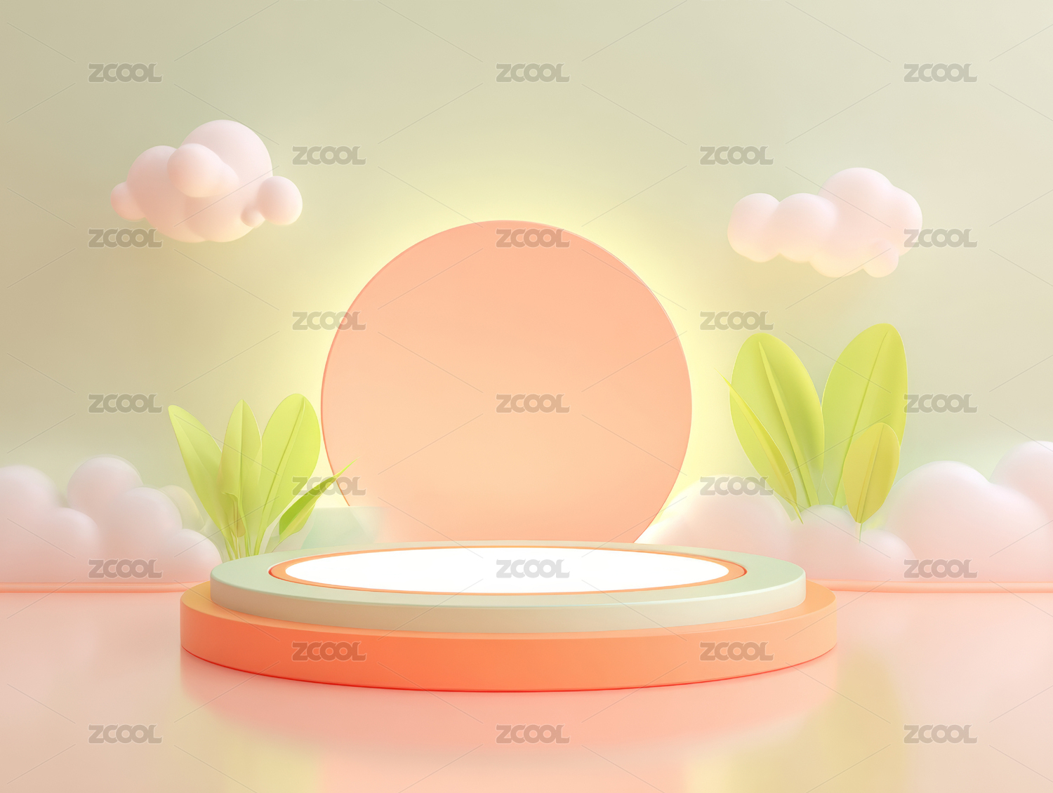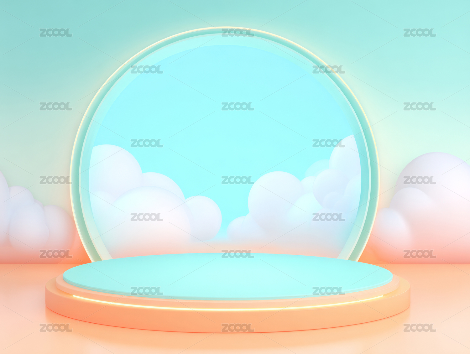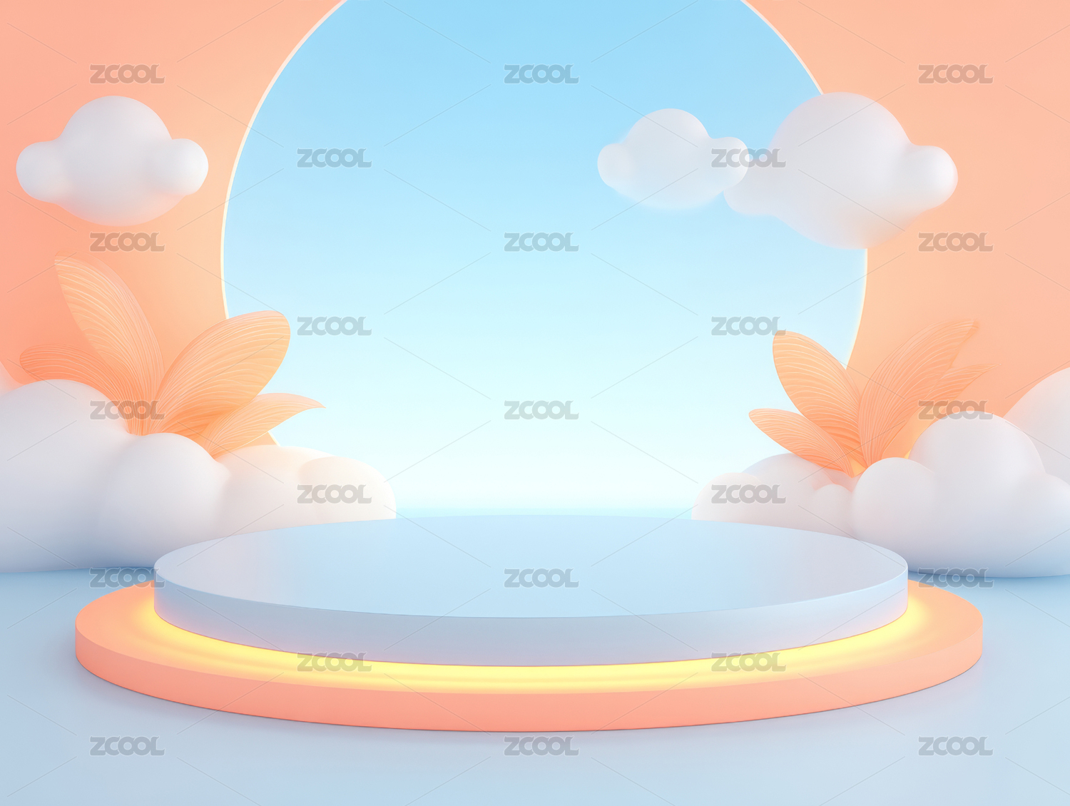 云朵,日落,梦幻,舞台,渐变色,立体,光效,背景,圆形,天空