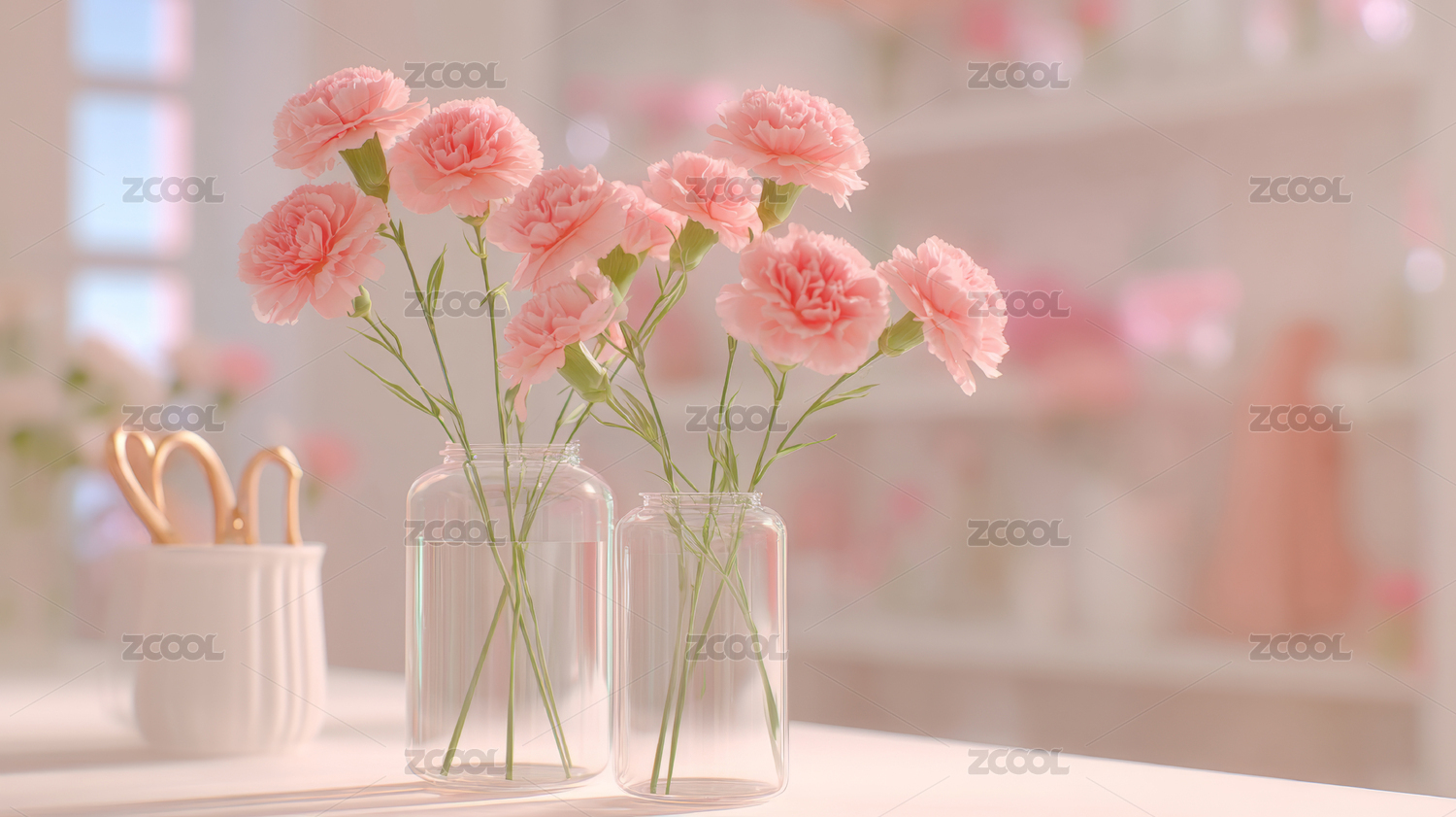 花瓶,鲜花,香水,玻璃瓶,清新,室内,装饰,桌面,粉色,白花