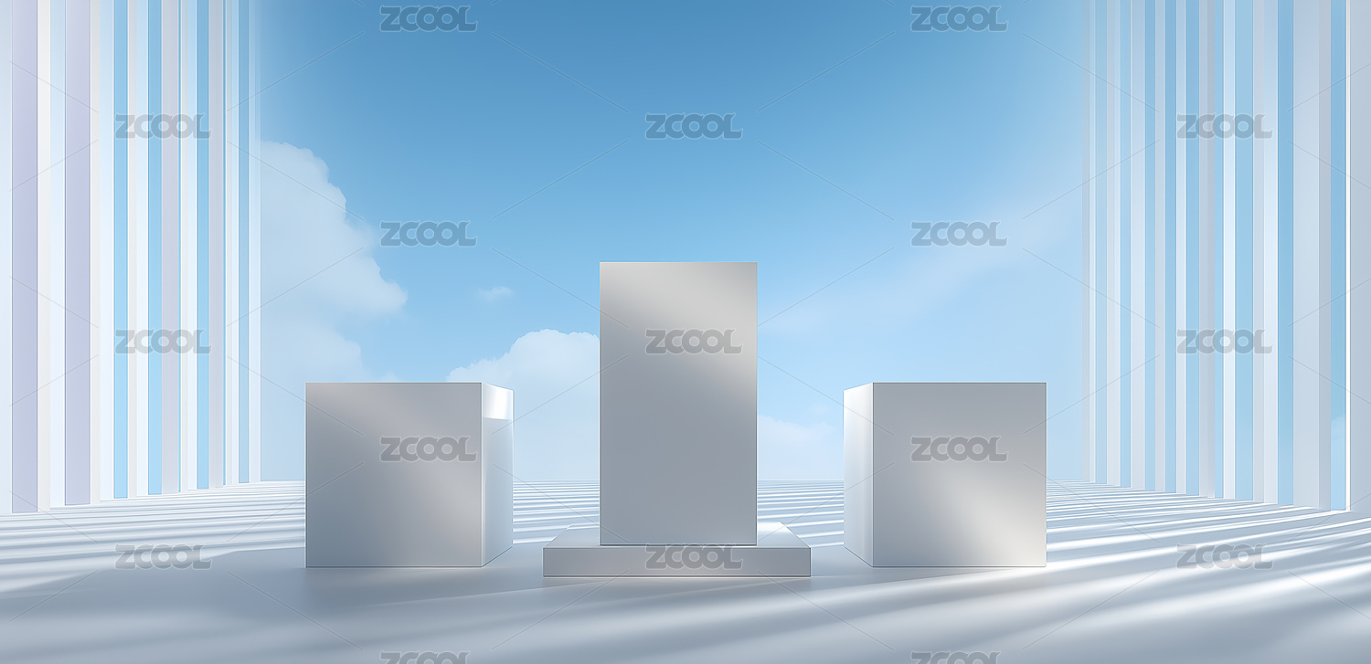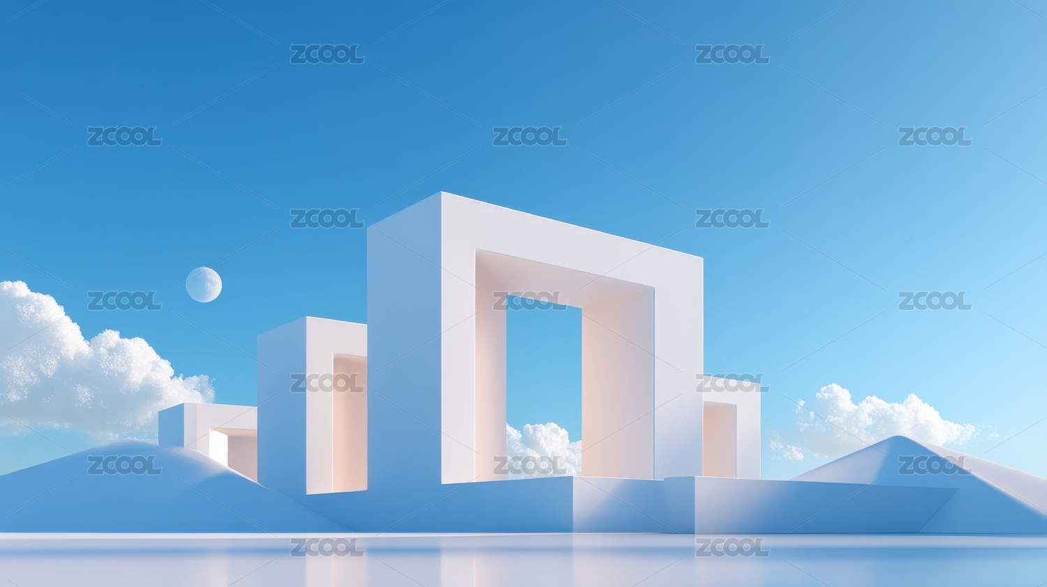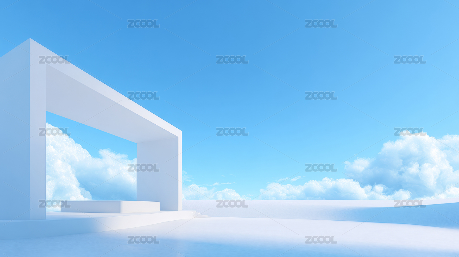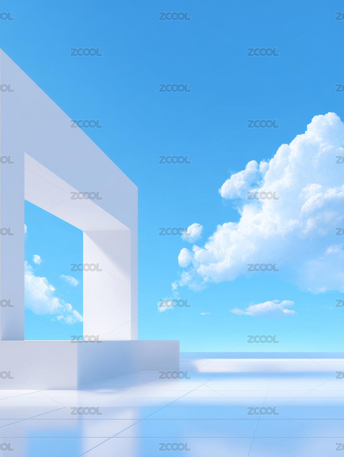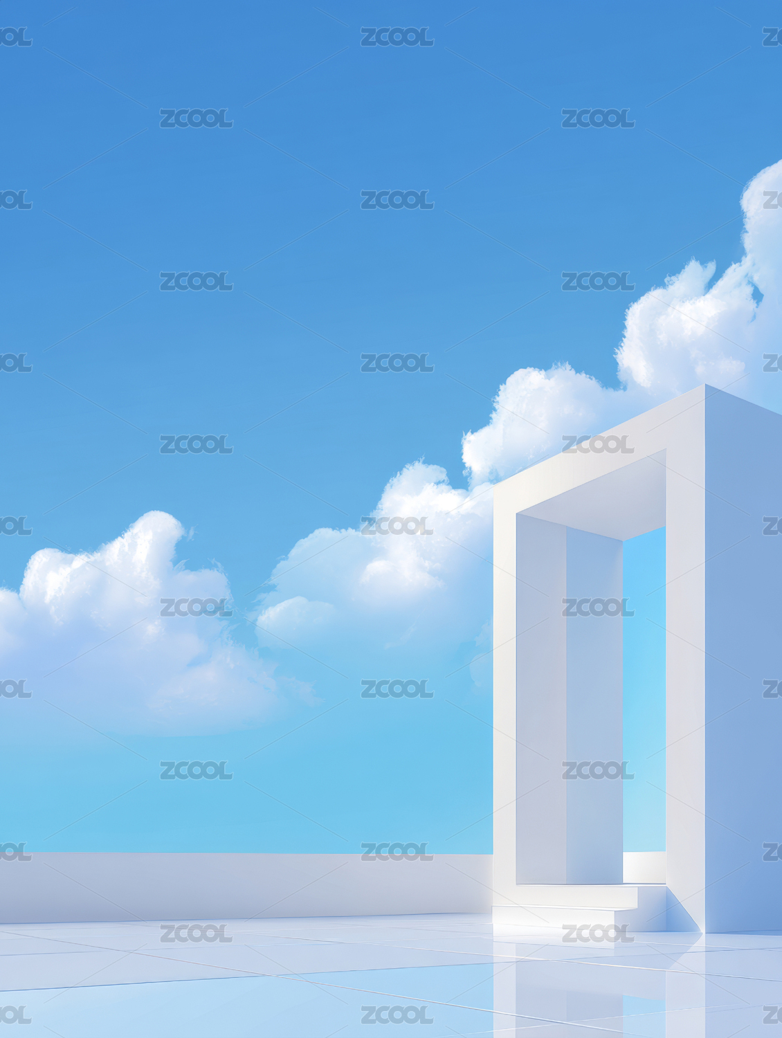 蓝天,白云,门廊,现代,简洁,几何,建筑,户外,明亮