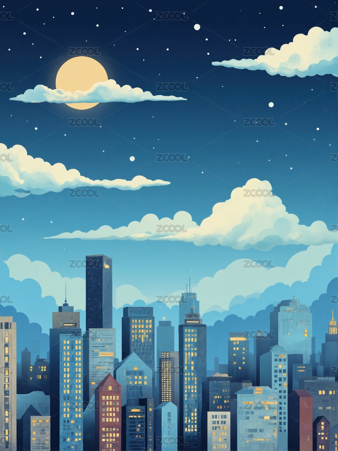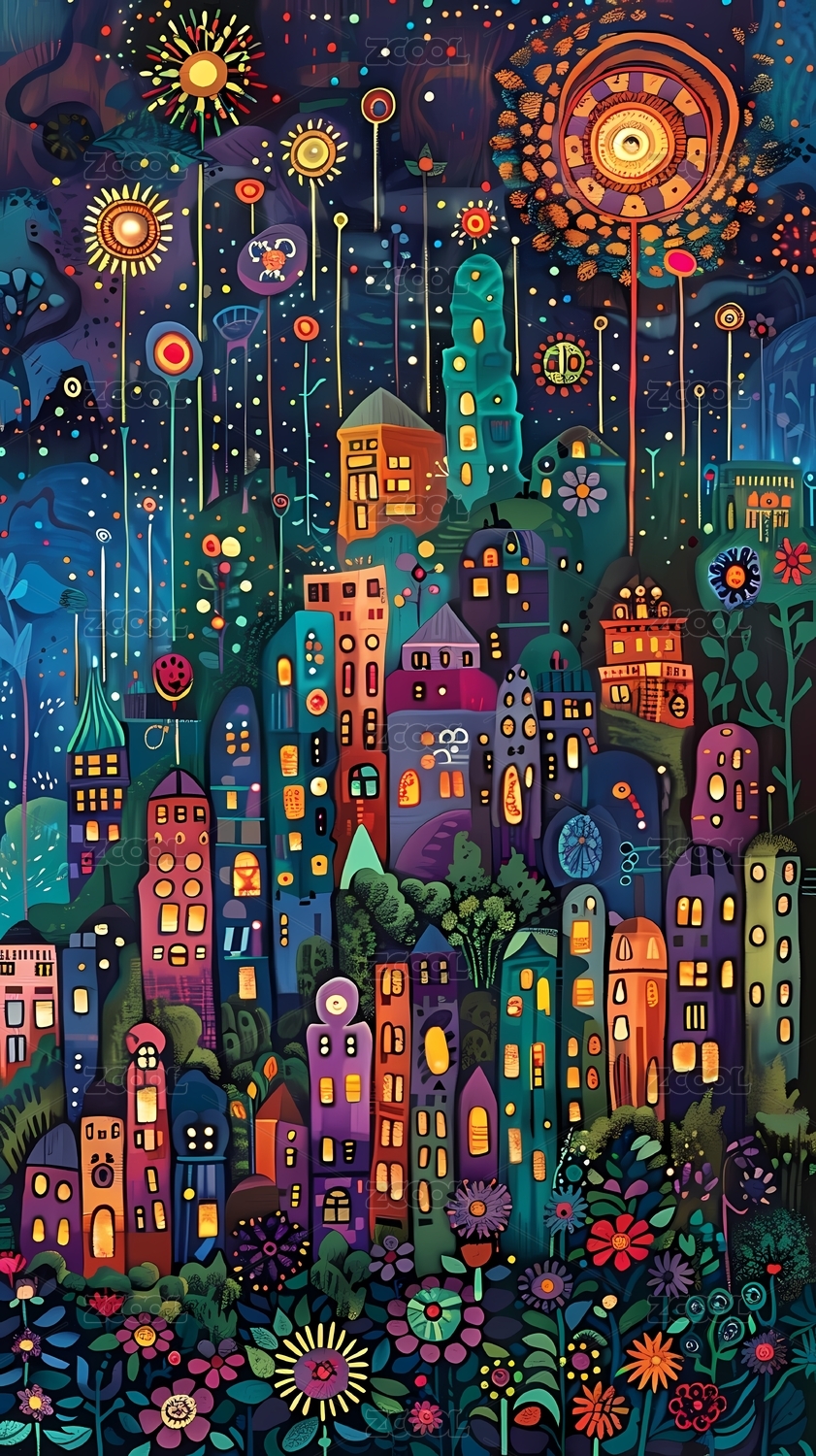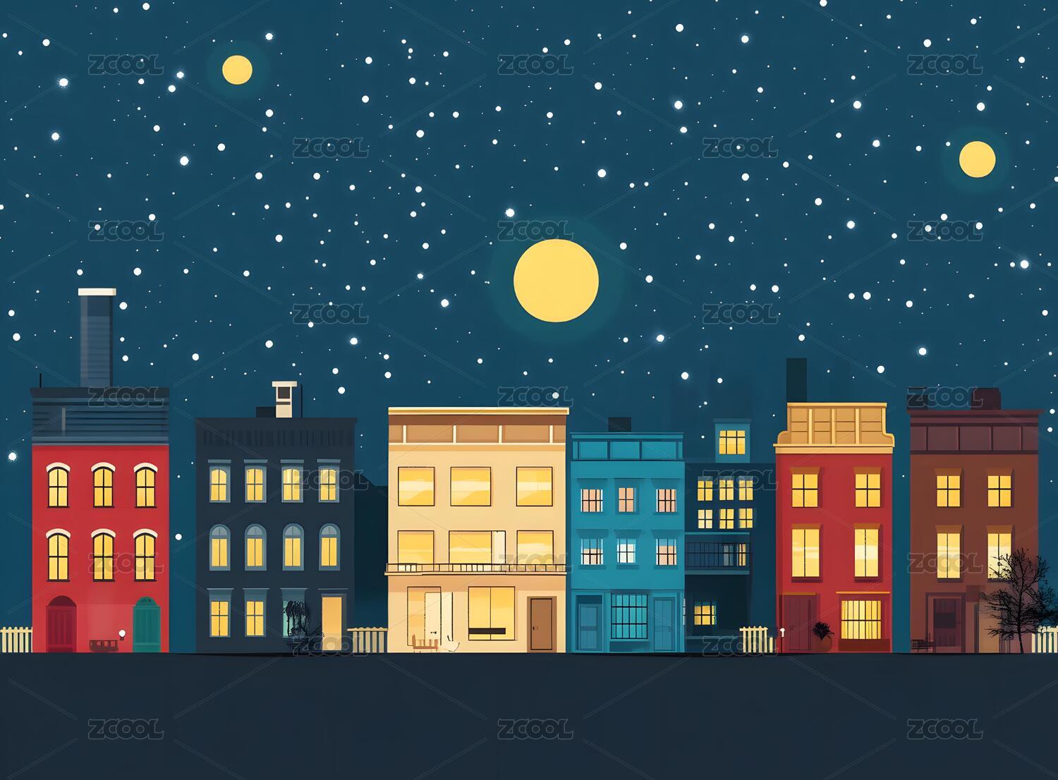艺术,插画,窗户,多彩,建筑,城市景观,天空,城市,夜景,星星