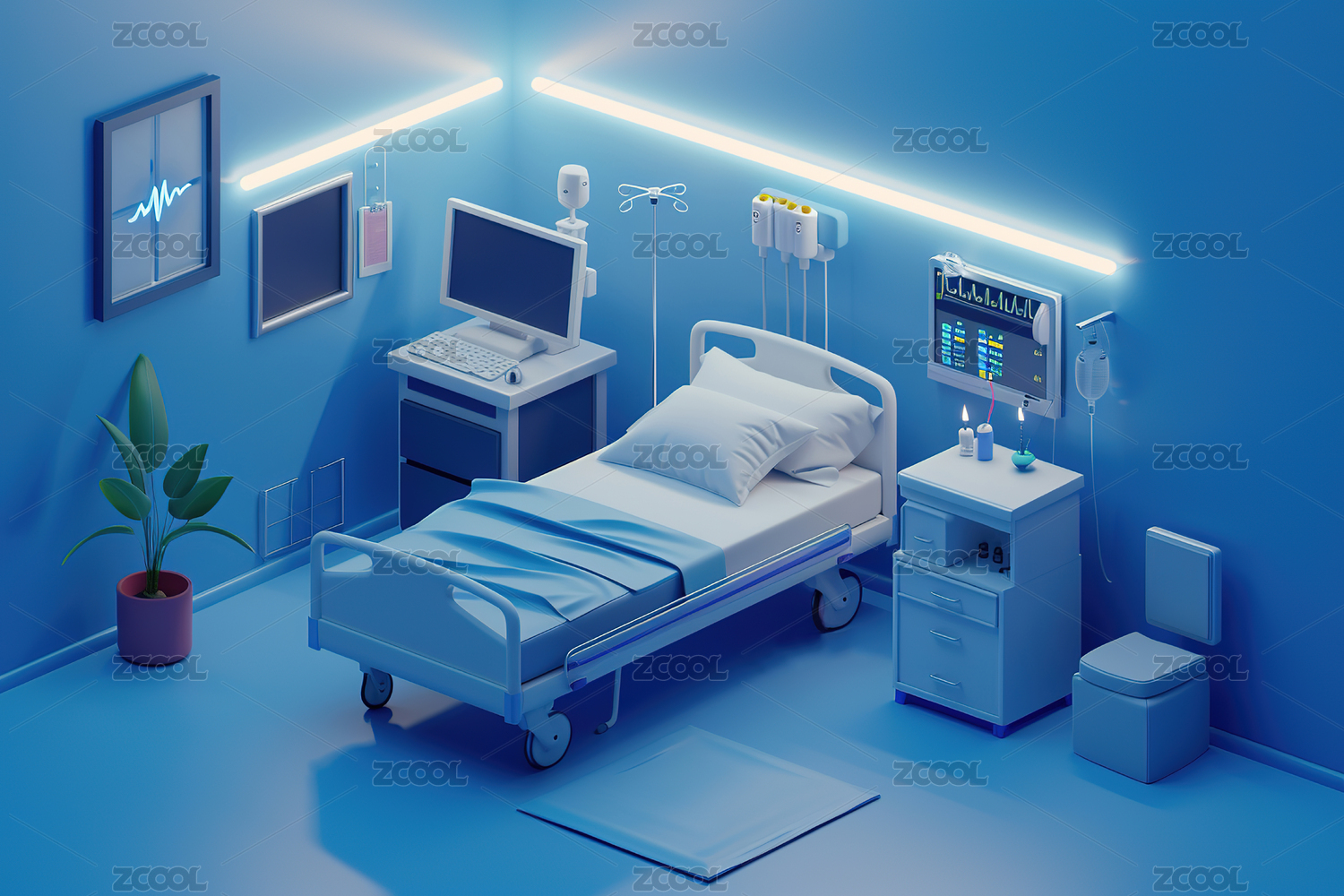 卡通立体风格医院病房插画