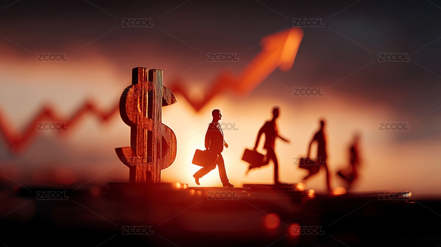 商务人士赚钱工资涨薪的剪影