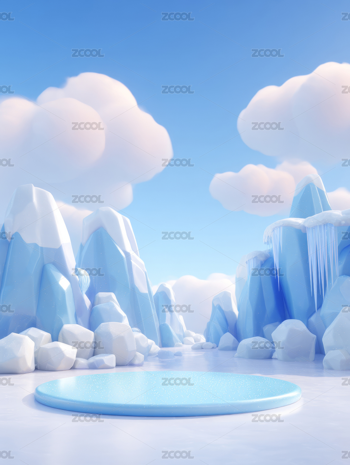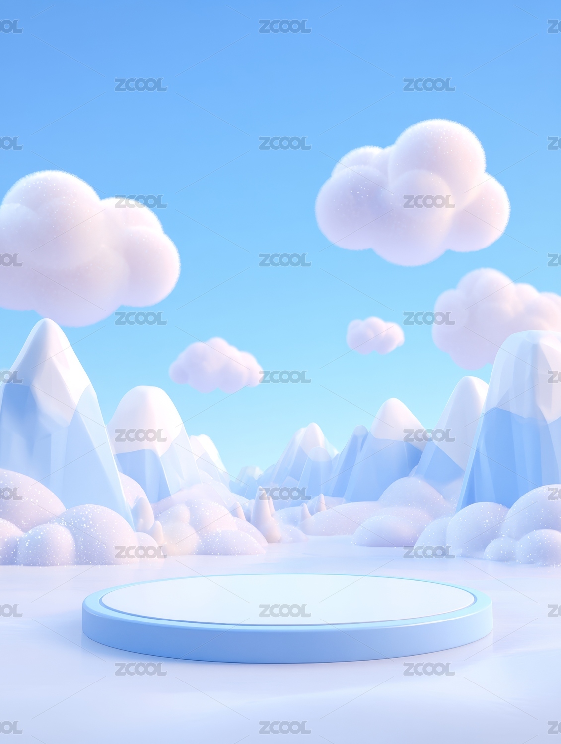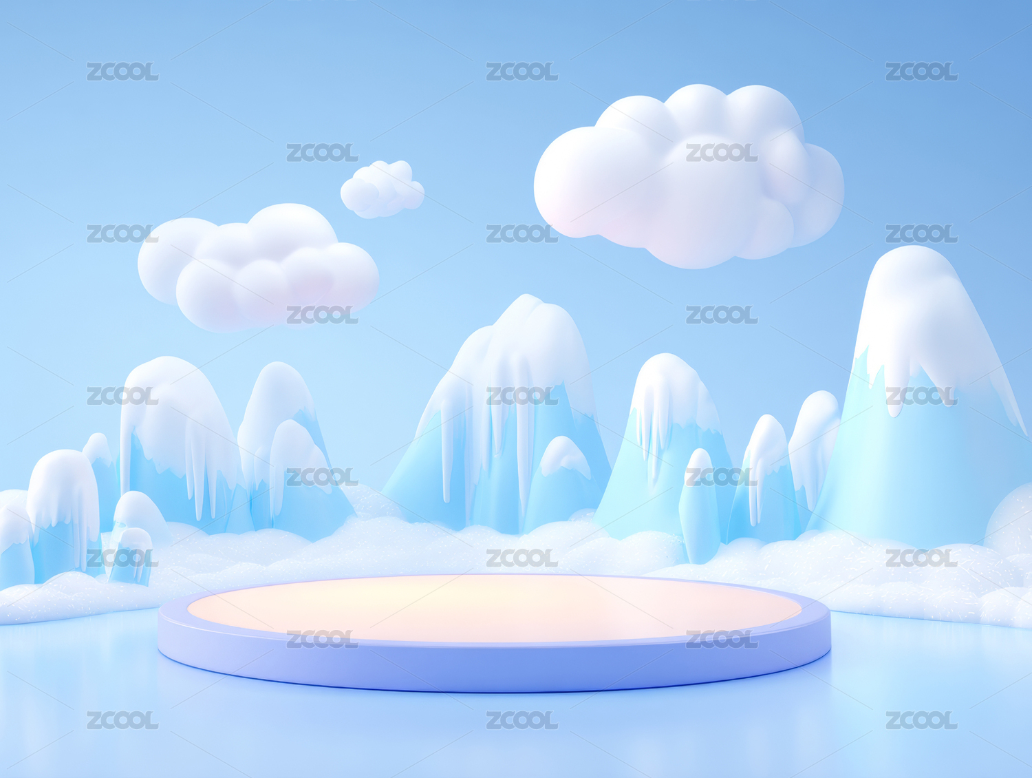 冰雪,舞台,云朵,山脉,湖泊,冬季,天空,纯净,卡通,场景