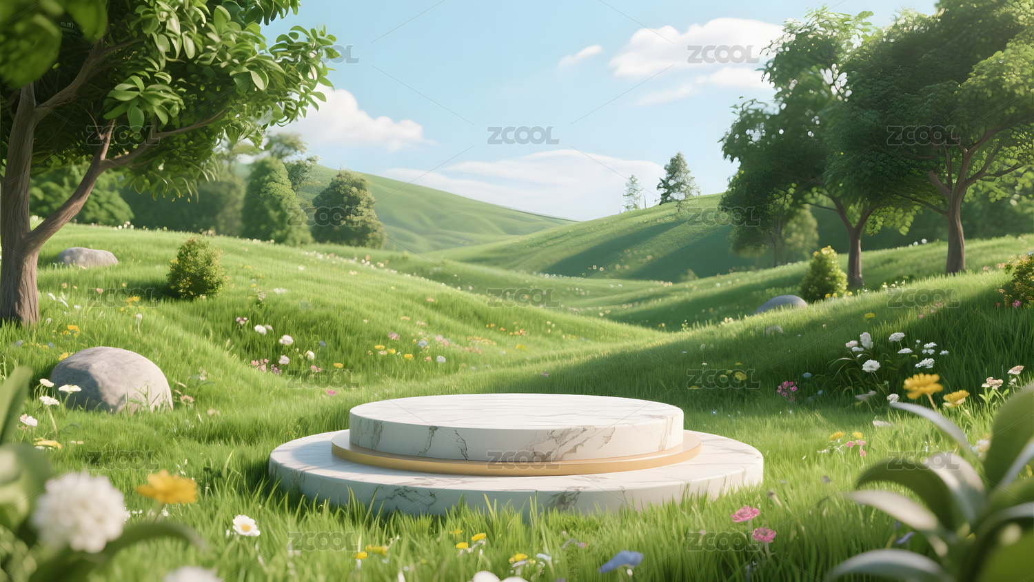 大自然户外草地展示台场景 3D渲染