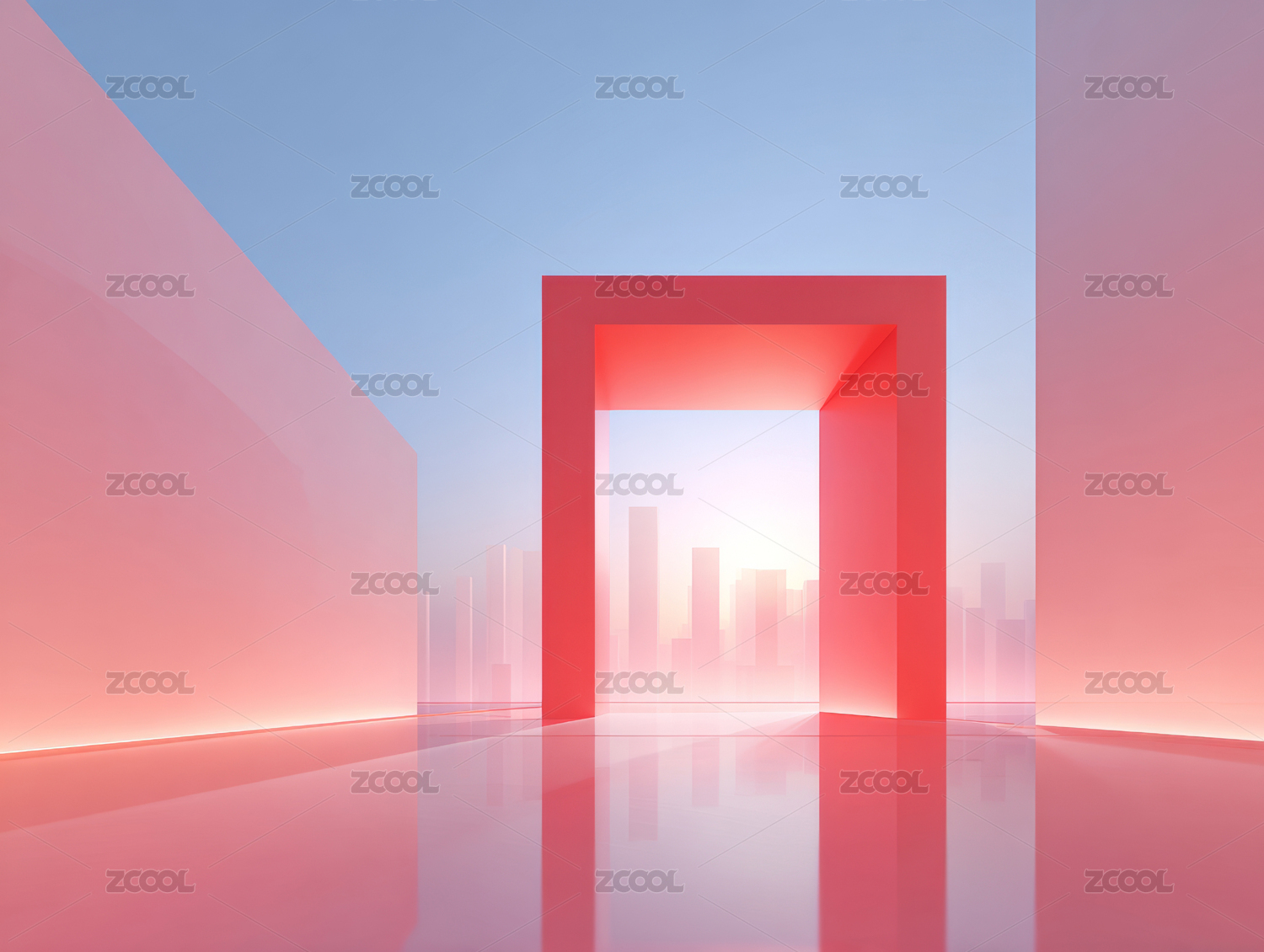 粉色,城市,建筑,天空,门户,渐变色,现代,简洁,室内,未来感