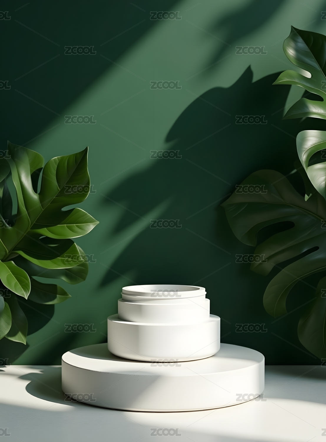 绿色背景下的产品展示台