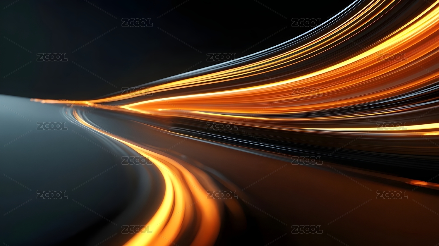黄色光轨线条黑色背景