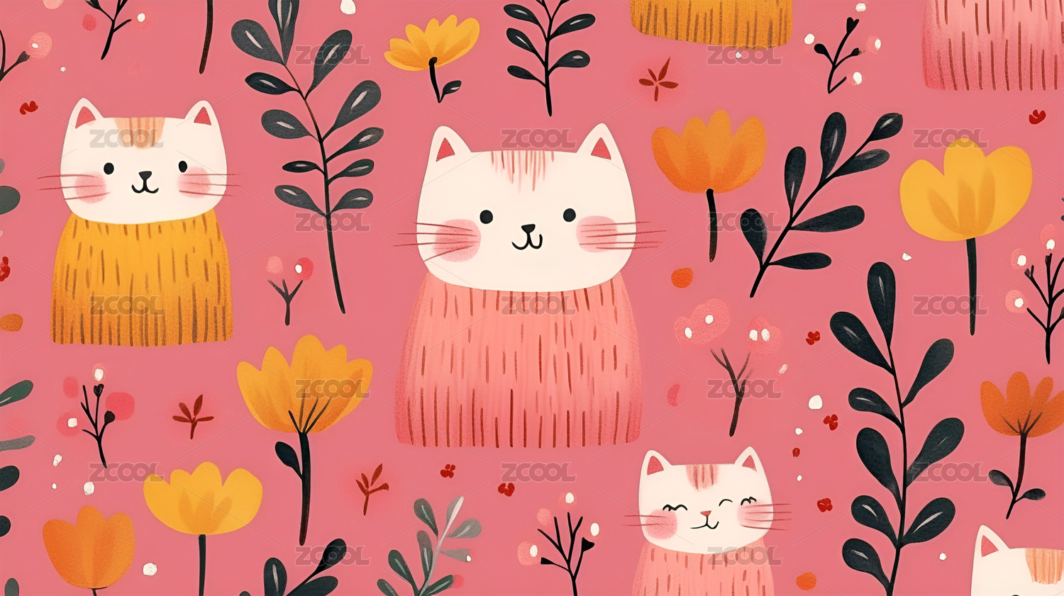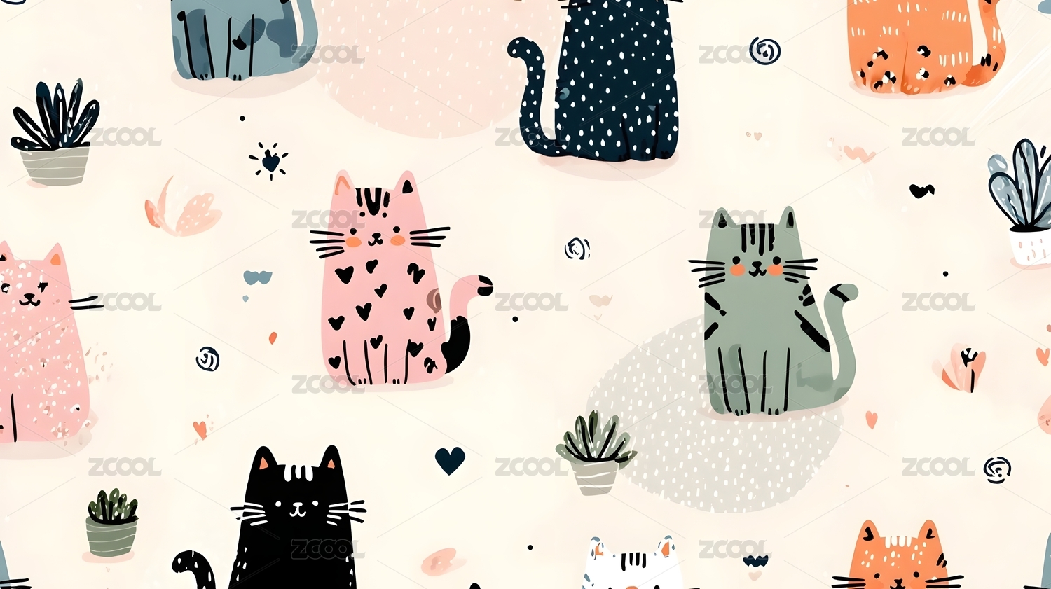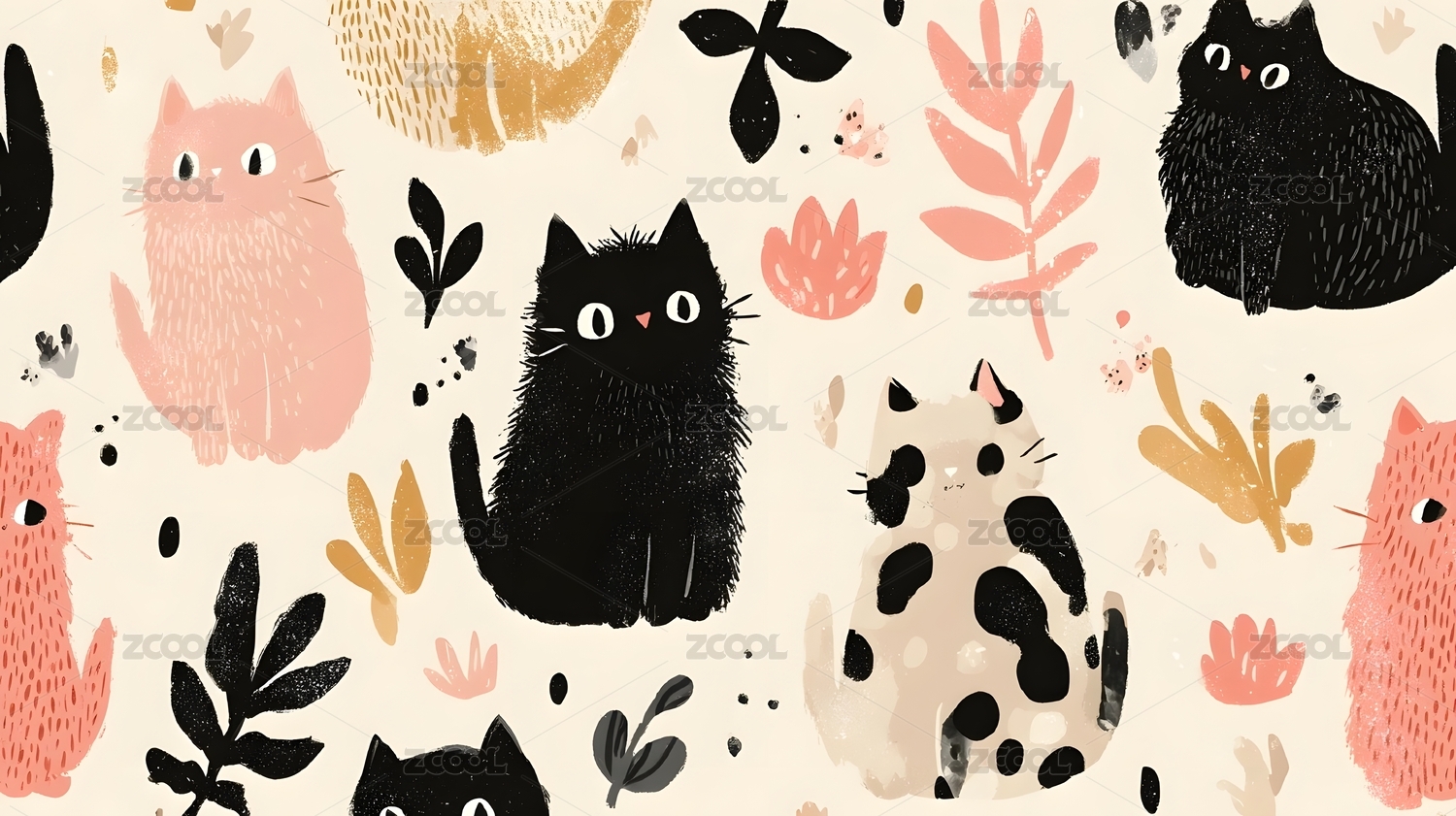 北欧风格居家猫猫感厚涂笔触抽象装饰画背景